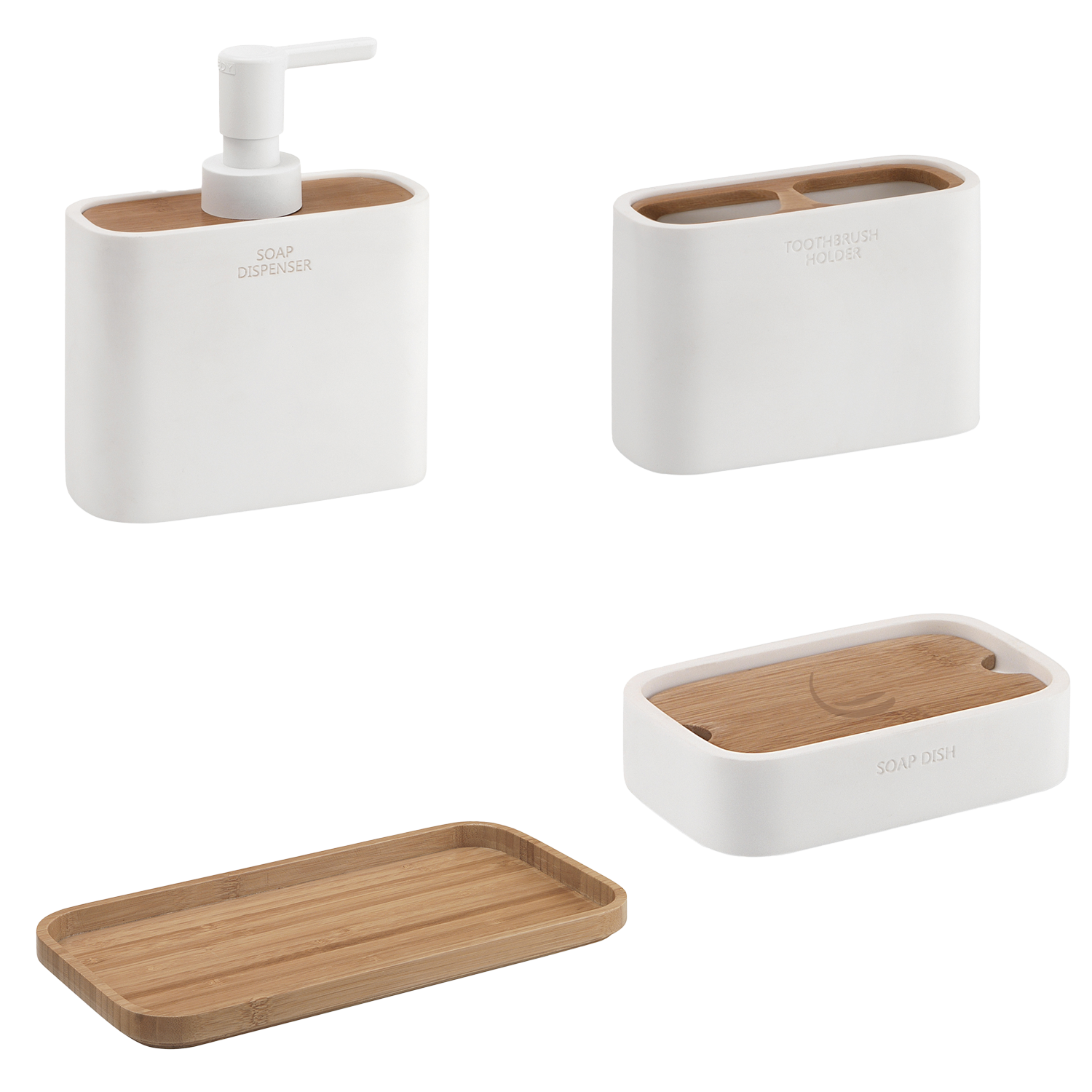 Set 4 Accessori D'Appoggio Gedy "Ninfea" Bianco/Bambù