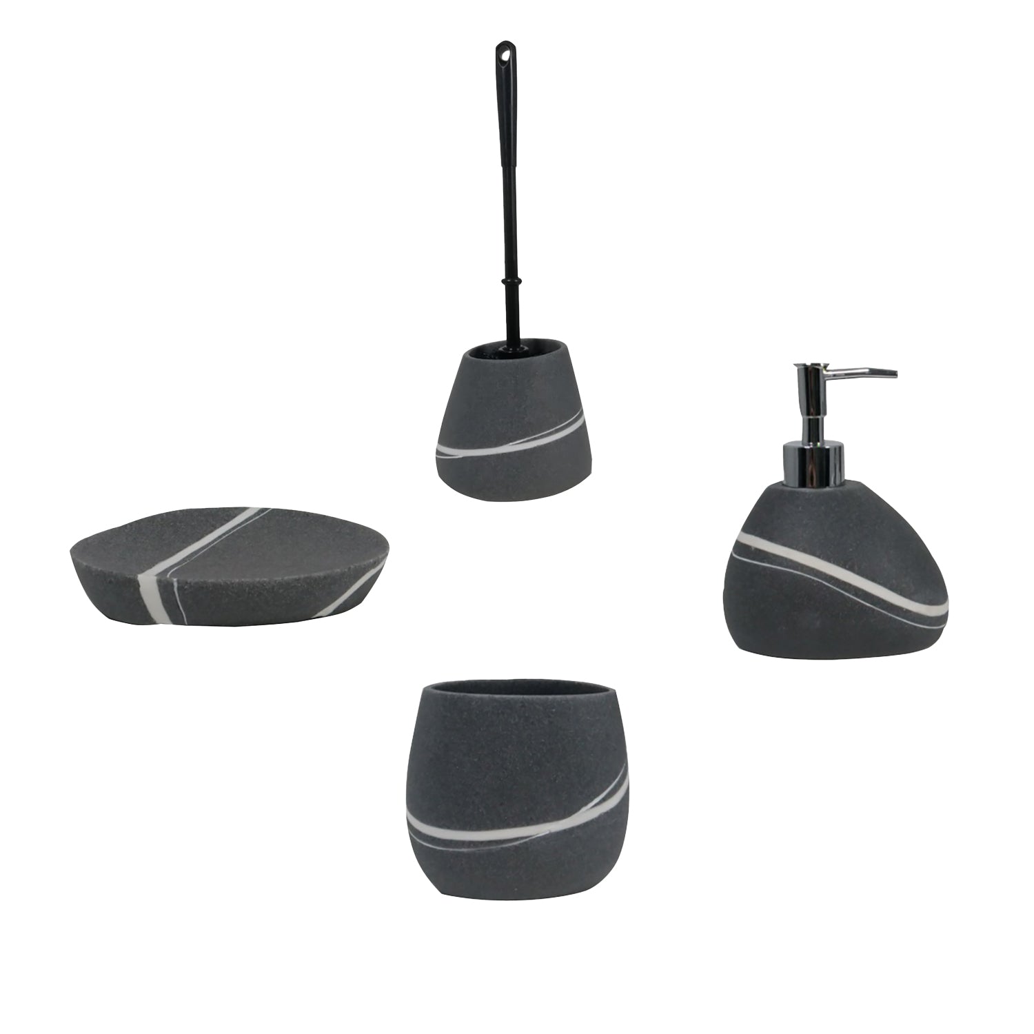 Il set di accessori d’appoggio in resina unisce praticità e design essenziale, trasformando gli elementi quotidiani del bagno in dettagli coordinati e armoniosi. La resina, resistente e facile da pulire, conferisce a ogni componente un aspetto moderno e curato, ideale per ambienti contemporanei o minimal. Il set comprende un portaspazzolini, un portasapone, un dosasapone con erogatore in plastica e un portascopino, tutti progettati per garantire funzionalità, ordine e un’estetica uniforme sul piano d’appoggio. Una soluzione completa e versatile, pensata per valorizzare l’ambiente bagno con semplicità e stile.