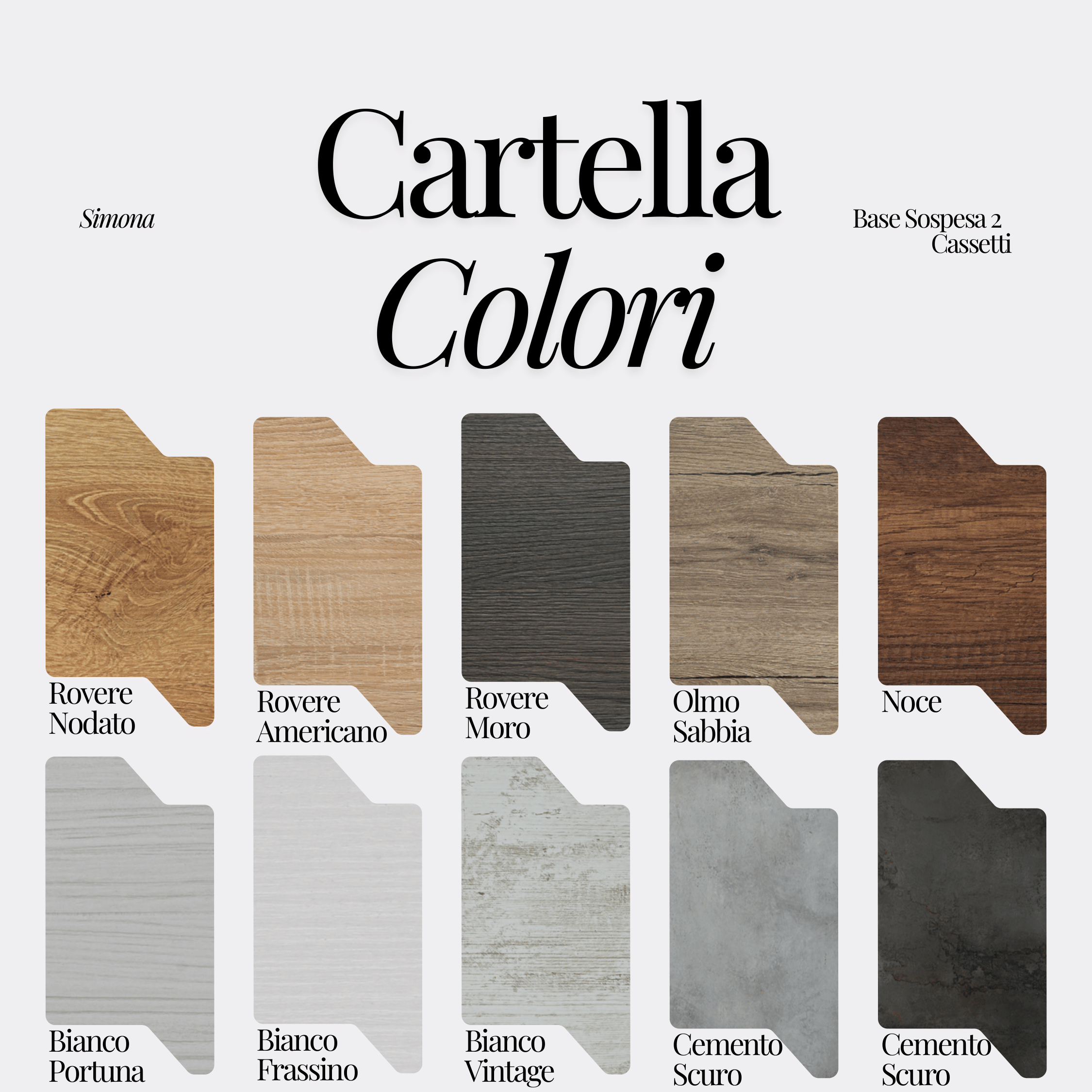 - Finitura base in foto: Rovere americano c/maniglie nero opaco