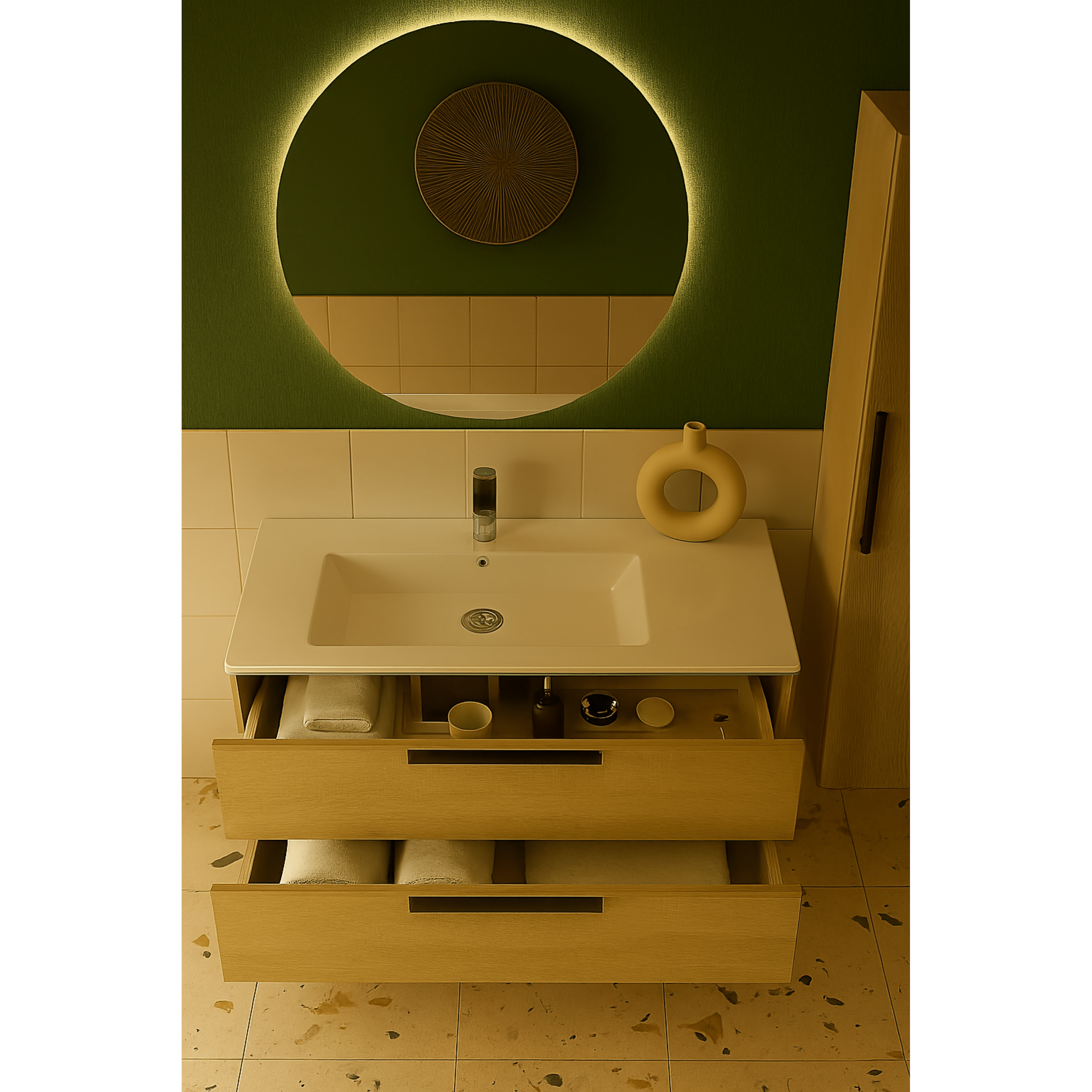 Mobile Bagno Sospeso Due Cassetti Specchio Retroilluminato Tondo 80 Cm Esseci Arredo Bagno "Simona"