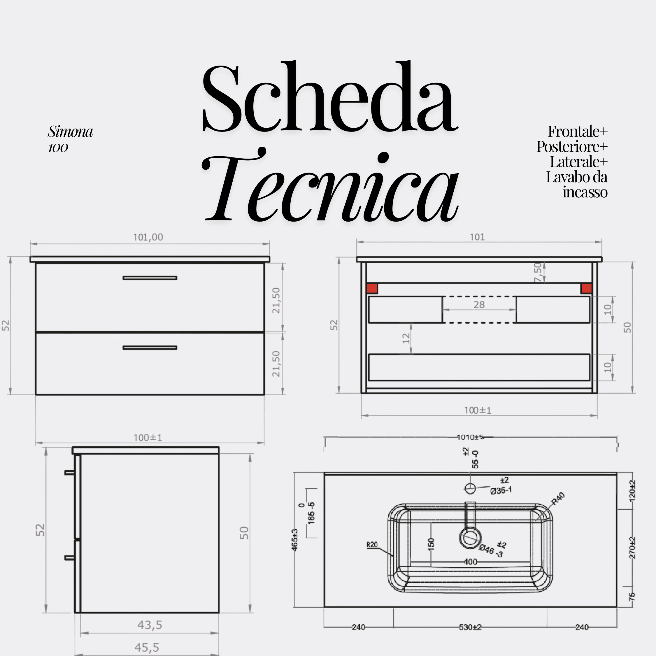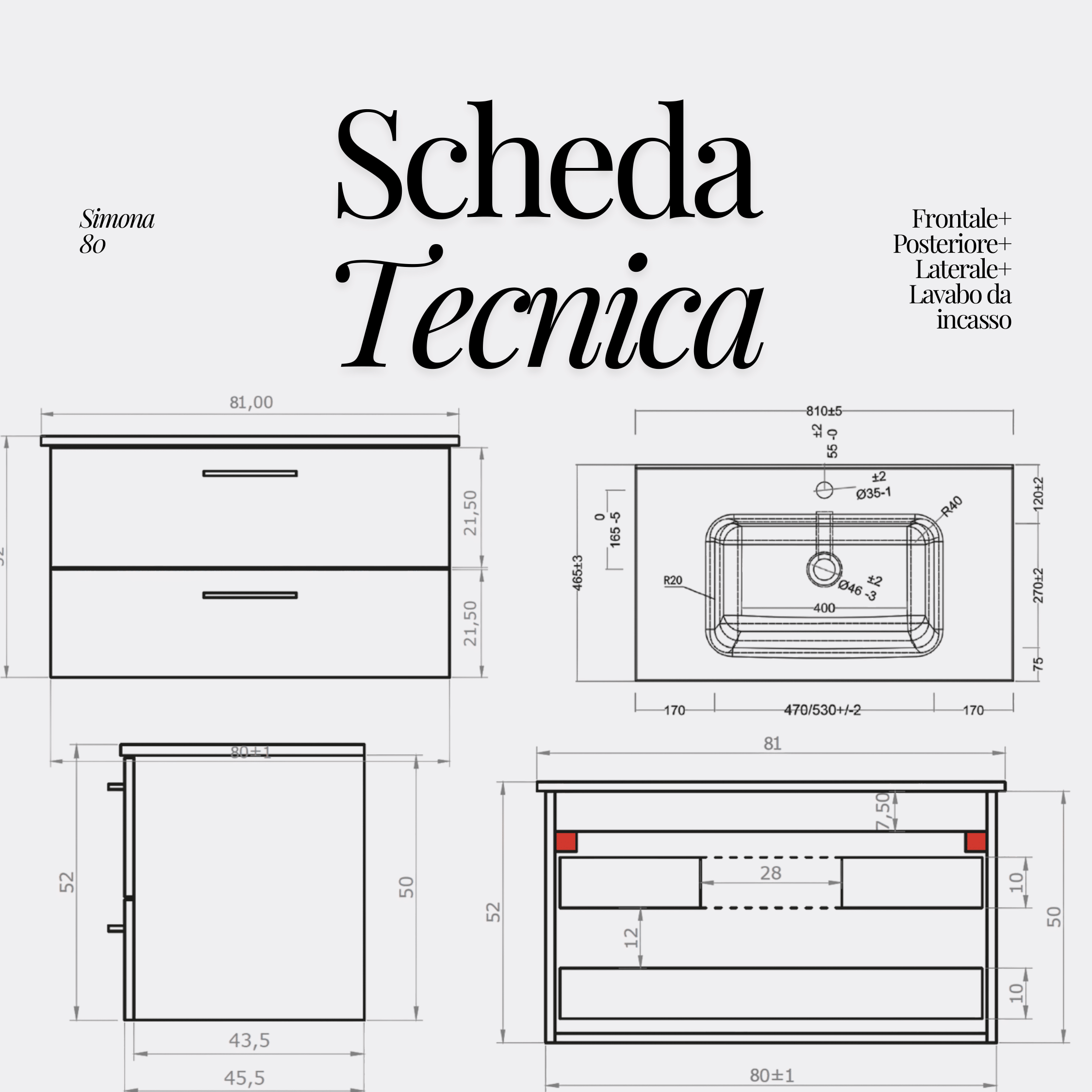 - Tipologia prodotto: Mobile bagno sospeso