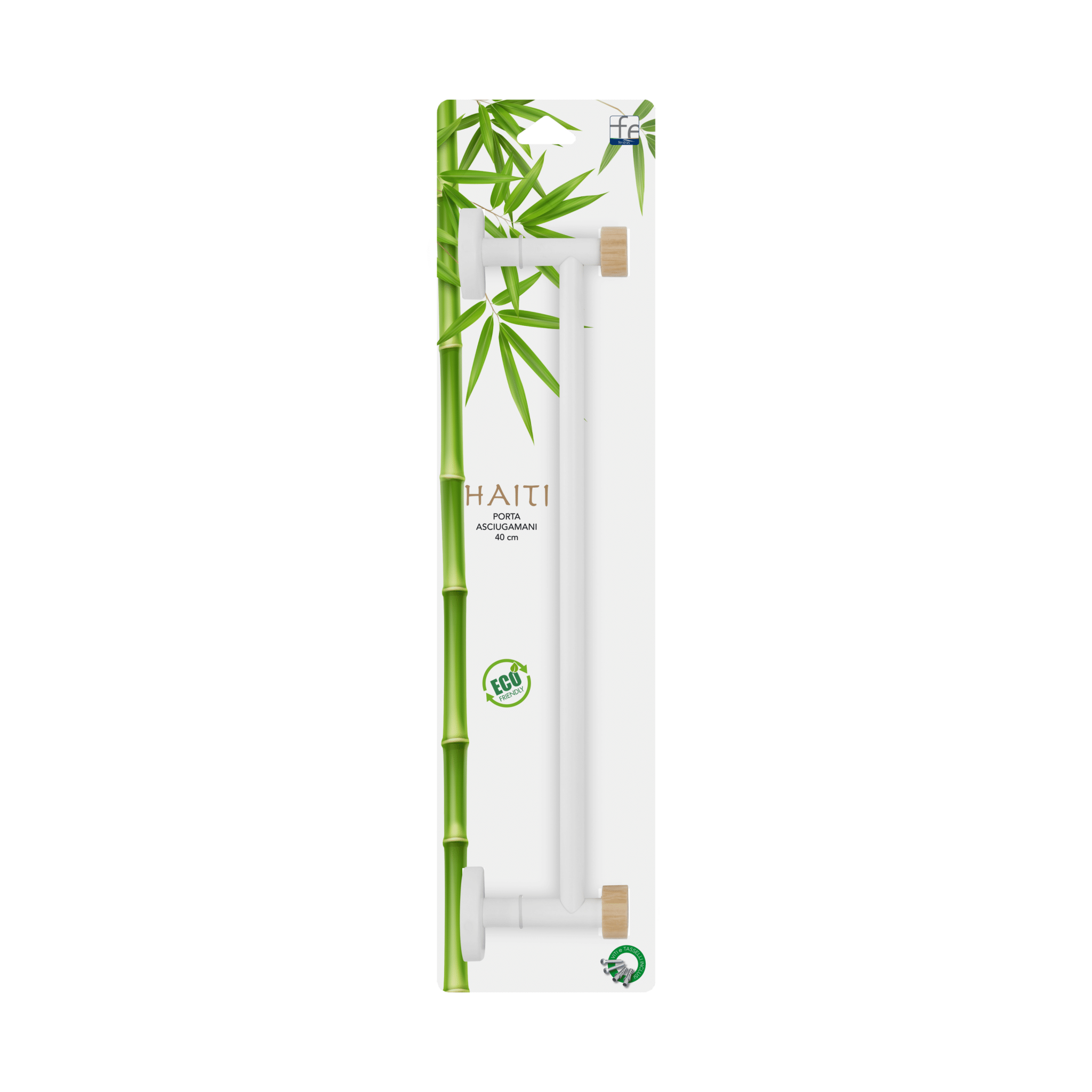 Porta Asciugamani a Parete 40 Cm Feridras "Haiti" Bianco/Bambù