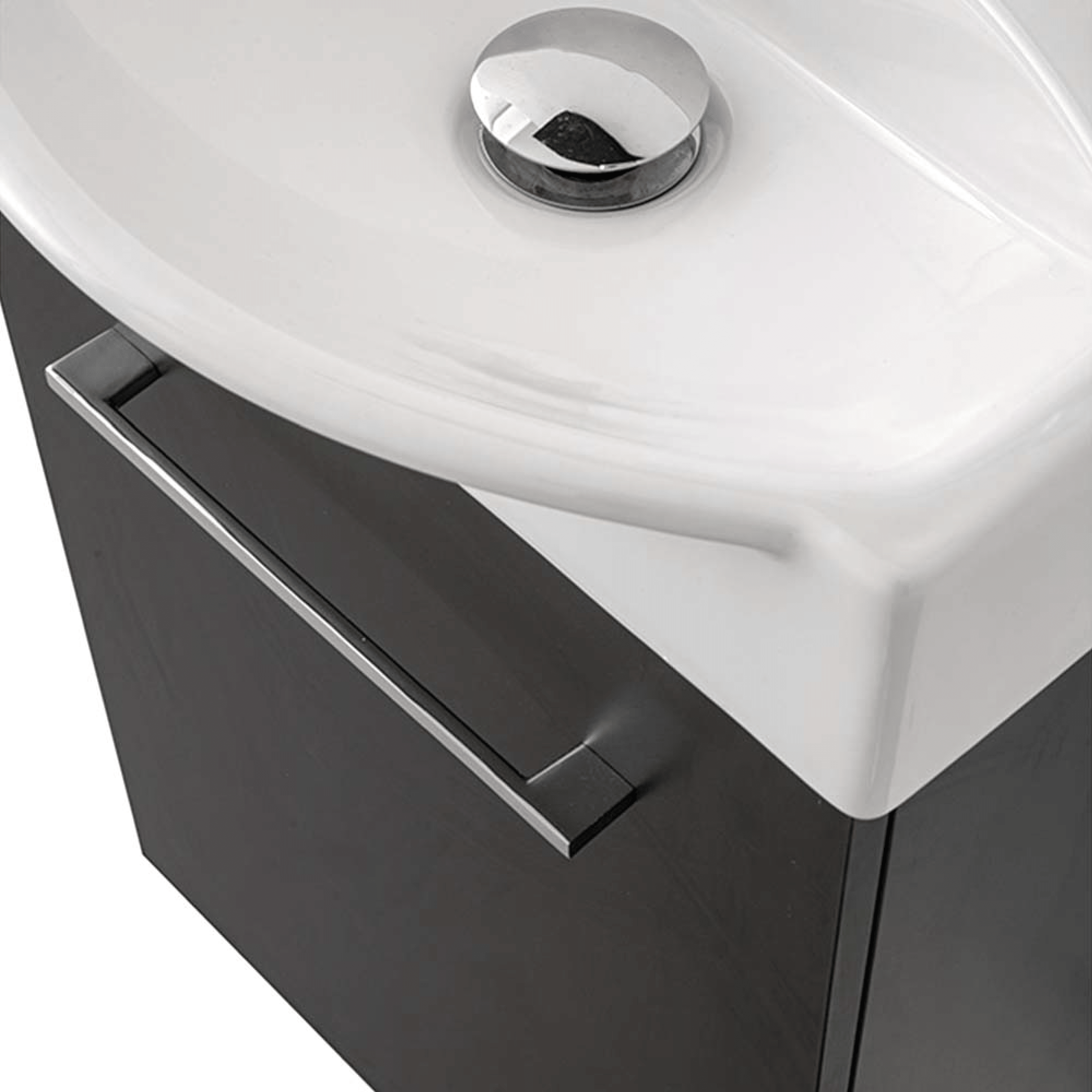 Mobile bagno sospeso linea Elys in Nobilitato melaminico con cassa e frontale in colore nero. Il mobile è dotato di un'anta soft-close con apertura mediante maniglia in ABS cromo. Lavabo in ceramica con foro miscelatore finitura bianco, specchio su cornice con mensoletta in legno incluso. La rubinetteria non è inclusa nella composizione, acquistabile separatamente dal nostro sito.