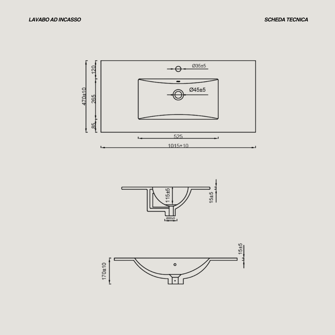 - Misure lavabo: L 101,5 x P 47 x H 1,5 (cm)