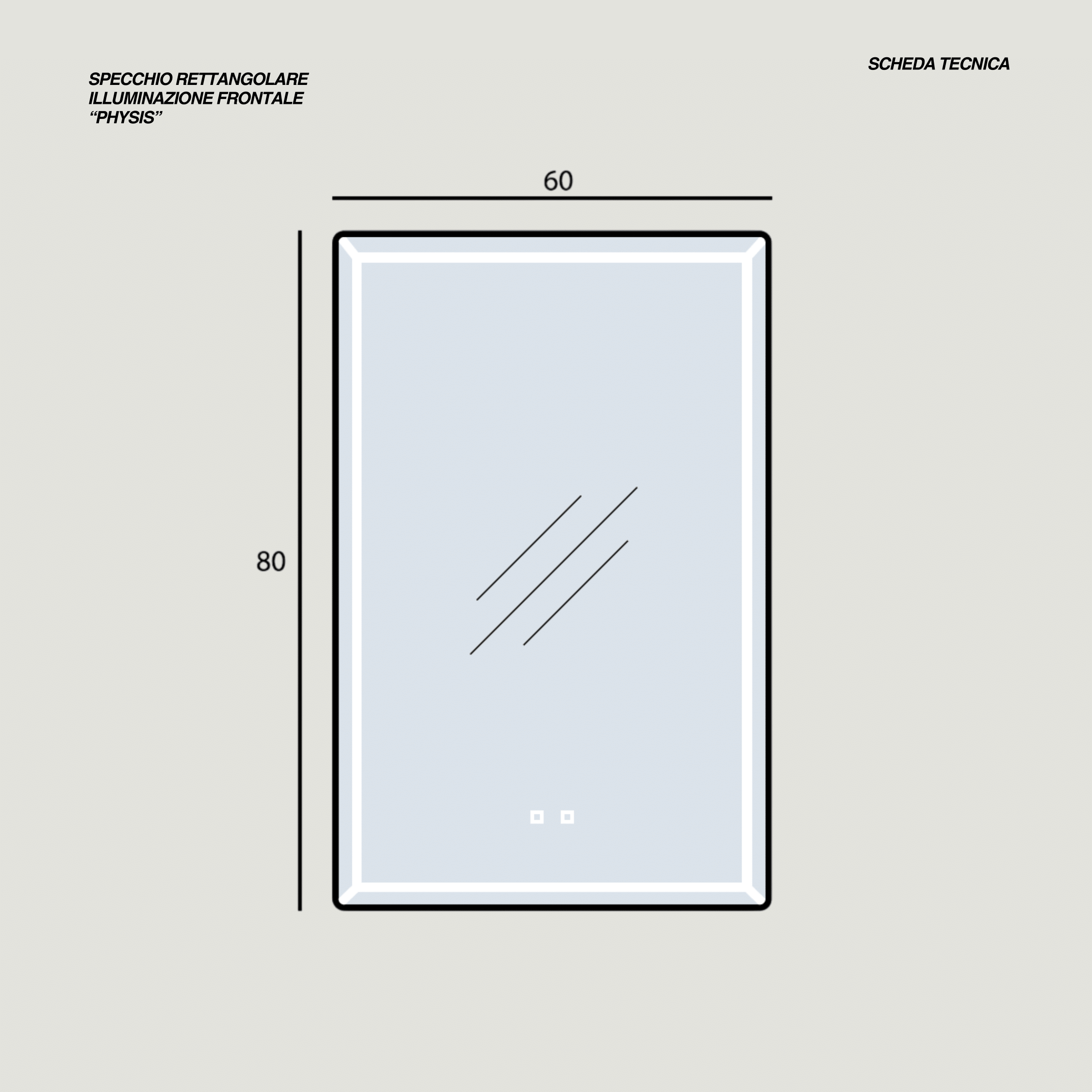 Specchio Rettangolare Illuminazione Frontale 60x80 Con Touch Accensione e Tasto Antifog "Physis"