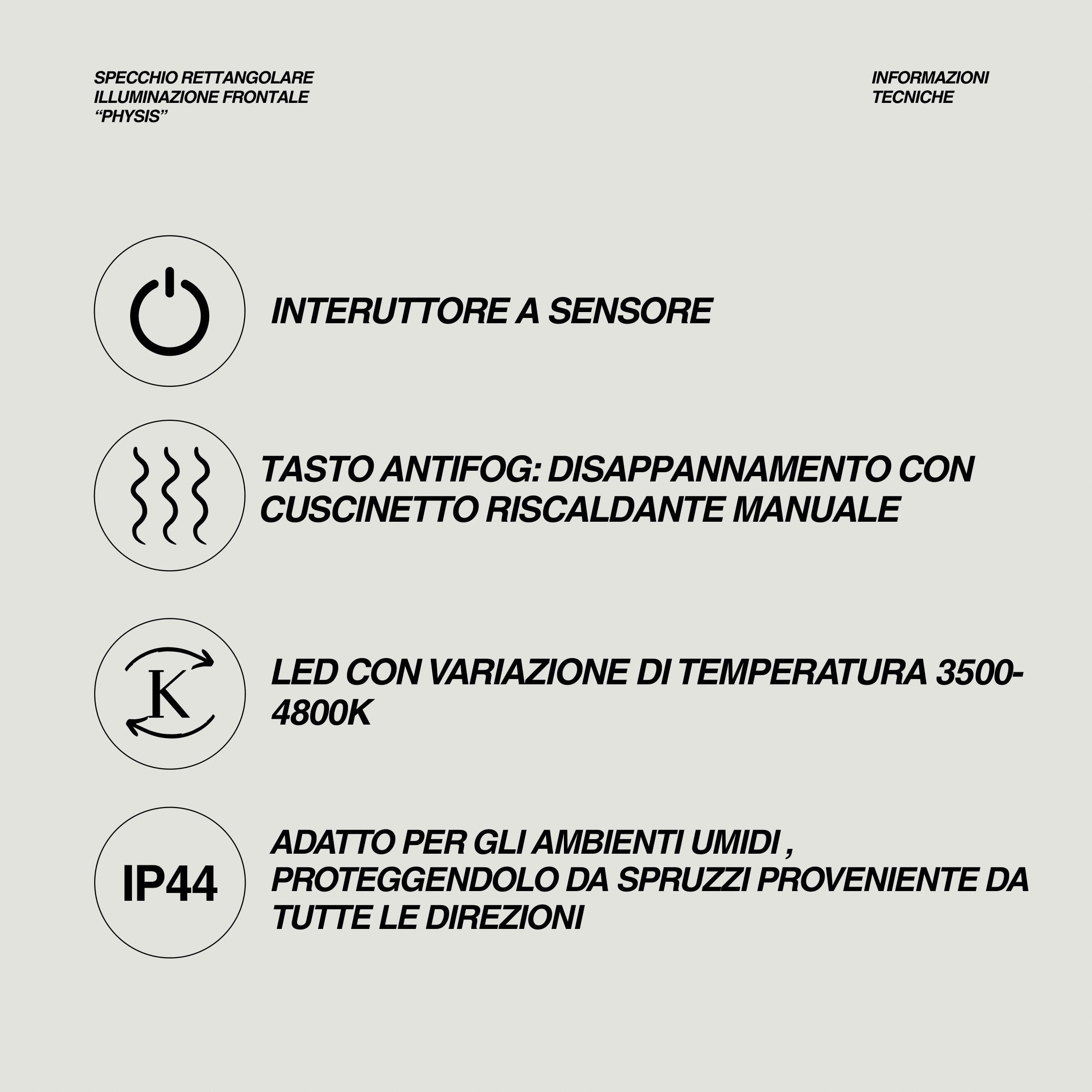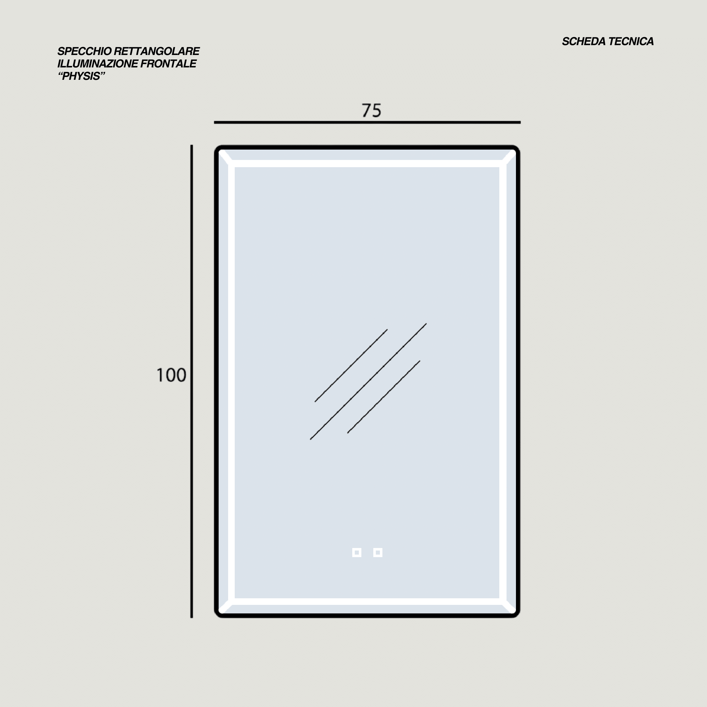 Specchio Rettangolare Illuminazione Frontale 75x100 Con Touch Accensione e Tasto Antifog "Physis"