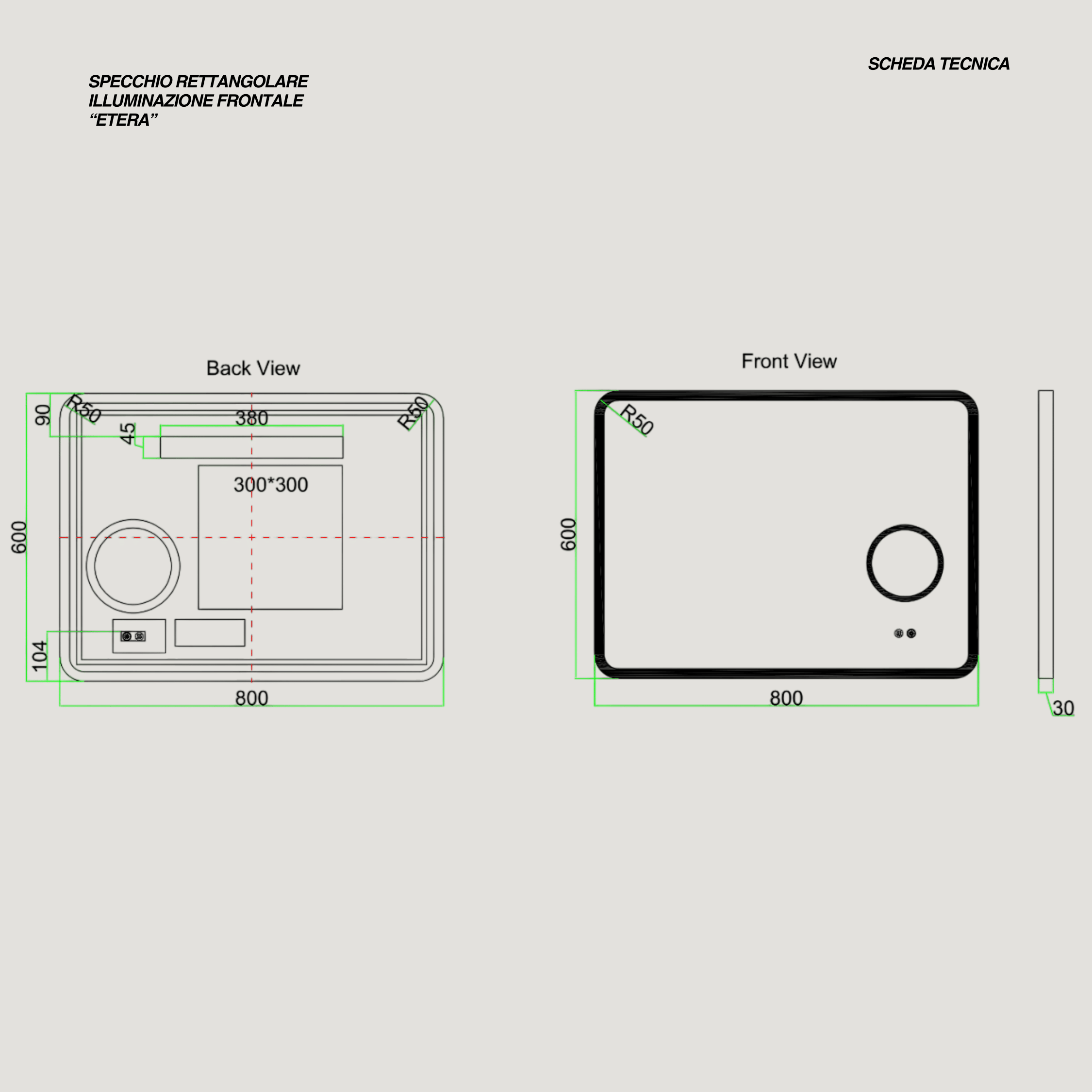 Lo specchio rettangolare da 80x60 cm con illuminazione LED frontale è pensato per offrire un’esperienza quotidiana all’insegna del comfort, della tecnologia e del design. La luce integrata, regolabile nella temperatura da 2700K a 6500K, consente di scegliere l’atmosfera più adatta al momento, passando da tonalità calde e rilassanti a luci fredde e funzionali. Il sistema di accensione touch rende l’utilizzo semplice e intuitivo, mentre il tasto dedicato alla funzione antifog attiva un cuscinetto riscaldante manuale che previene l’appannamento dello specchio, mantenendolo sempre nitido anche dopo la doccia.L’alimentazione elettrica da 220–240V e 30W garantisce efficienza energetica e prestazioni affidabili. La struttura è progettata per resistere all’umidità e agli spruzzi d’acqua provenienti da tutte le direzioni, grazie alla protezione IP44, mentre la certificazione IP65 assicura una maggiore resistenza alla polvere e ai getti d’acqua, rendendolo ideale per l’ambiente bagno.Con le sue linee pulite e proporzioni equilibrate, questo specchio si integra perfettamente in contesti moderni e minimalisti, trasformando la zona lavabo in uno spazio elegante e funzionale. Non è solo uno specchio, ma un vero alleato quotidiano che unisce estetica, tecnologia e praticità.