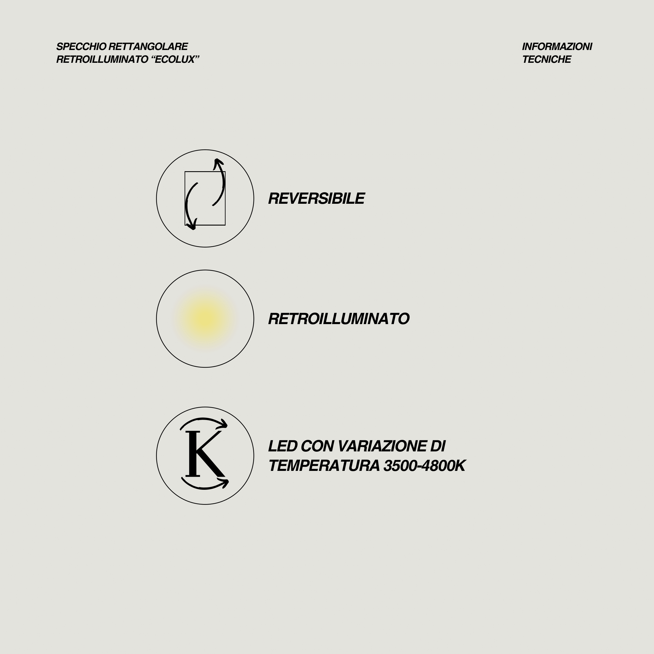 Specchio Rettangolare Retroilluminato 80x70 Reversibile "Ecolux"