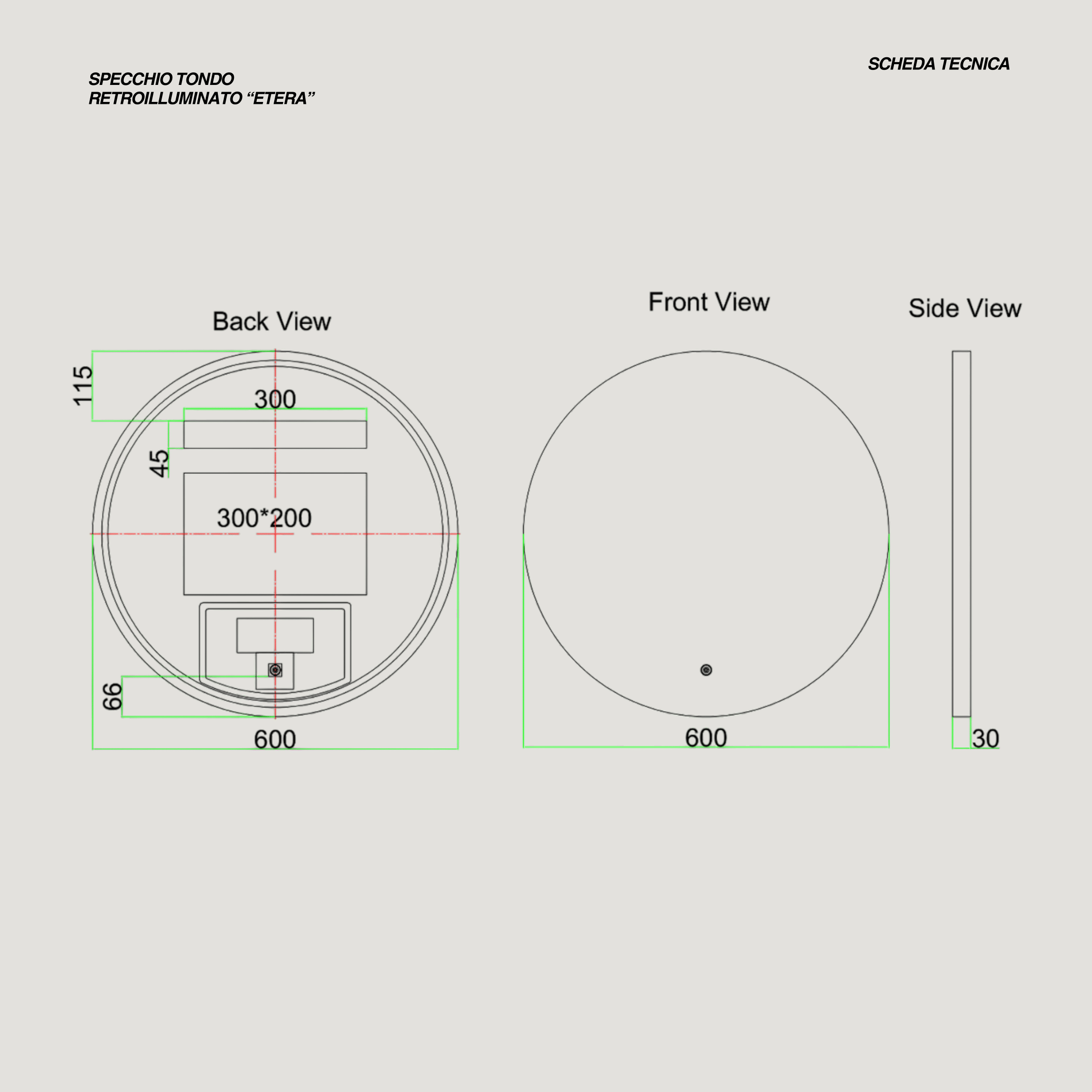 Specchio Tondo Diametro 60 Retroilluminato Con Touch Accensione e Antifog Automatico "Etera"