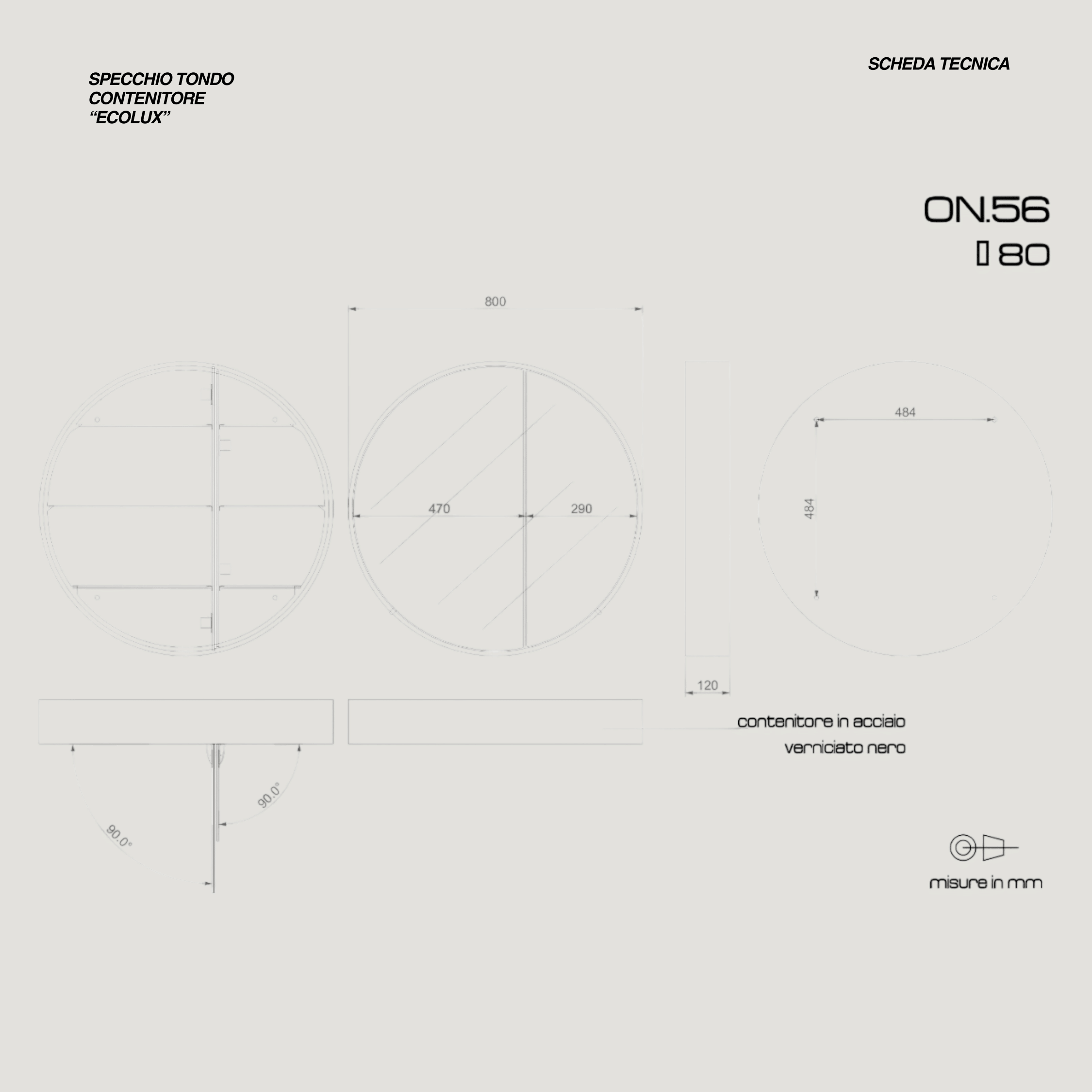 Lo specchio tondo da 80 cm di diametro è una soluzione elegante e funzionale per l’ambiente bagno. Dotato di doppia anta con apertura a 90°, rivela al suo interno mensole pratiche pensate per riporre cosmetici, accessori e piccoli oggetti quotidiani, mantenendo l’ordine senza rinunciare allo stile. La struttura contenitore è realizzata in acciaio con finitura nera, una scelta che conferisce carattere e modernità, perfetta per ambienti dal gusto contemporaneo o industriale. La forma rotonda, unita alla funzionalità del vano interno, rende questo specchio un elemento distintivo, capace di coniugare estetica e praticità in un unico gesto progettuale.