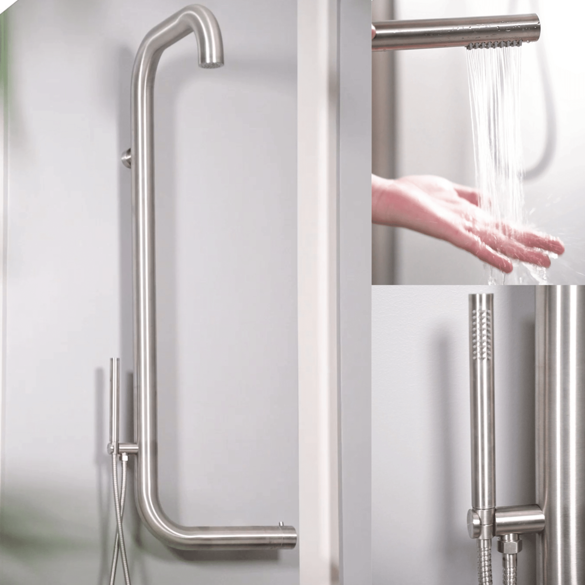 La doccia Sined Arborea in accaio inox 316L viene montata direttamente a muro. Ideale per casa ed esterno.Parete doccia con profilo in acciaio inox, accessoriata dell'utile doccino mobile per il massimo comfort. La doccia esterna a muro SINED Arborea, posizionabile con 3 punti di fissaggio a parete. Realizzata in ottimo accciaio inox AISI 316L (acciaio inox marino) è stata pensata per tutte le attività che hanno posco spazio per la installazione a terra di una doccia. Studiata per grandi carichi di lavoro è ideale per tutte le attività all` aperto o per il Bagno. Ottima per uso interno anche nel bagno di casa. Dispone inoltre di un miscelatore progressivo con deviatore incorporato.
