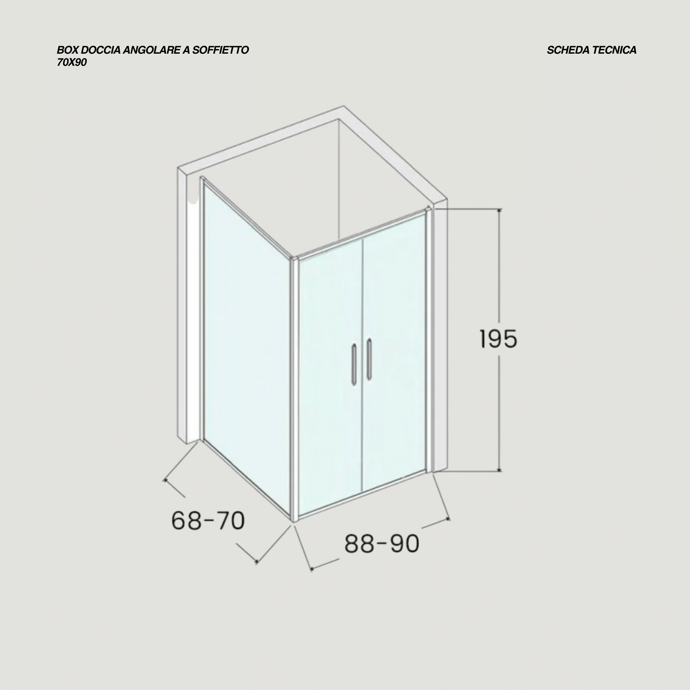 - Tipologia prodotto: Box doccia angolare doppia porta saloon