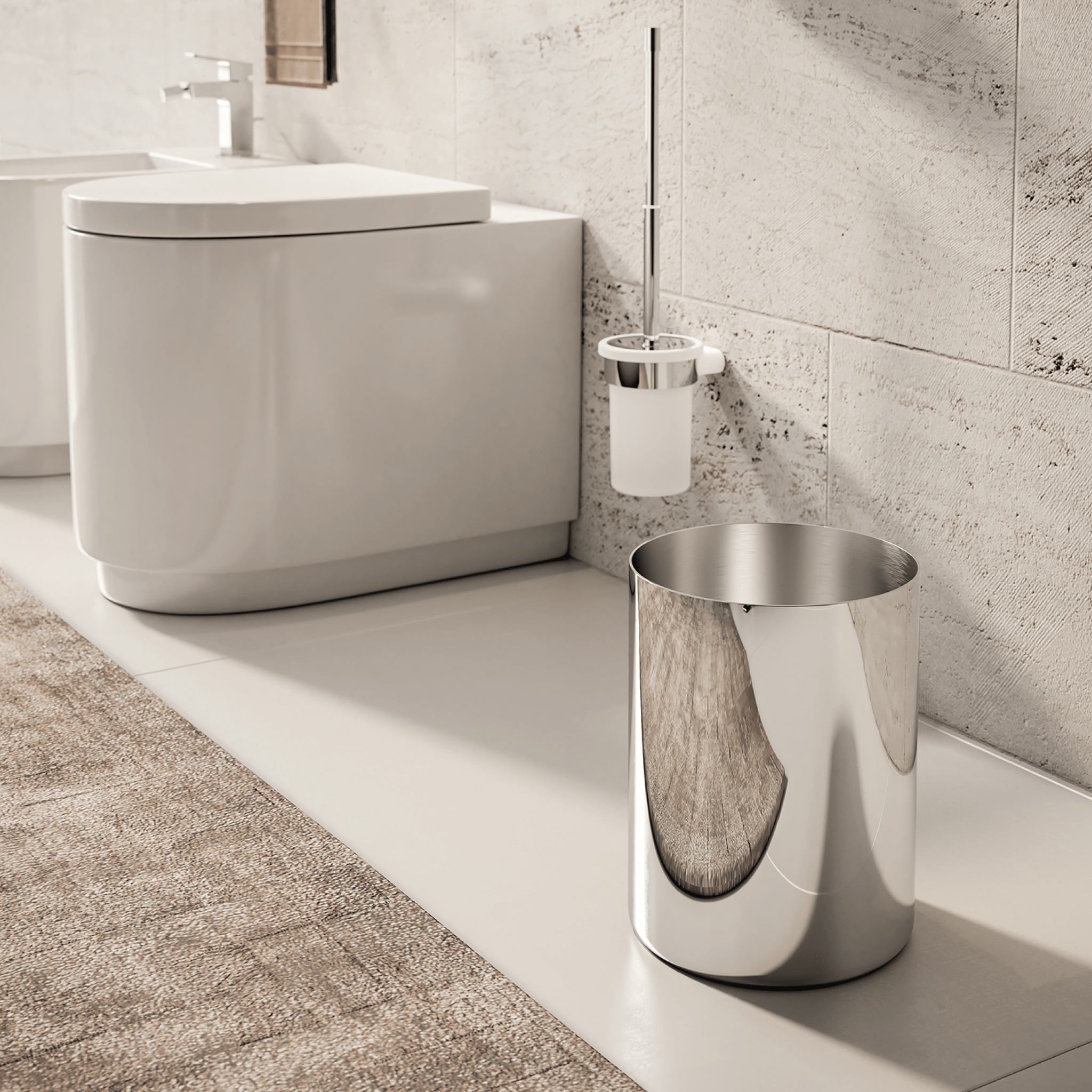Pattumiera bagno realizzata in acciaio inox con capienza di 6,6 lt. La pattumiera è possibile posizionarla in qualsiasi angolo della vostra casa, un comodo gettacarte adatto anche per ambienti con spazi ridotti.
