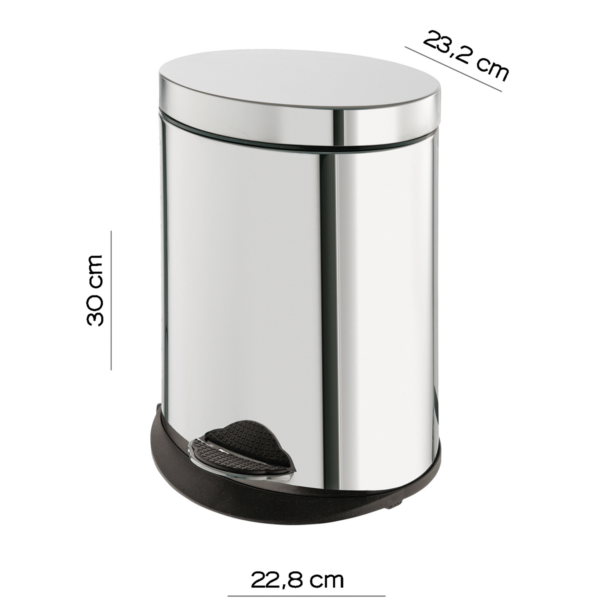 Pattumiera in acciaio inox colorazione cromo lucido con capienza di 5 Lt con pedale e contenitore estraibile ,chiusura soft-close.