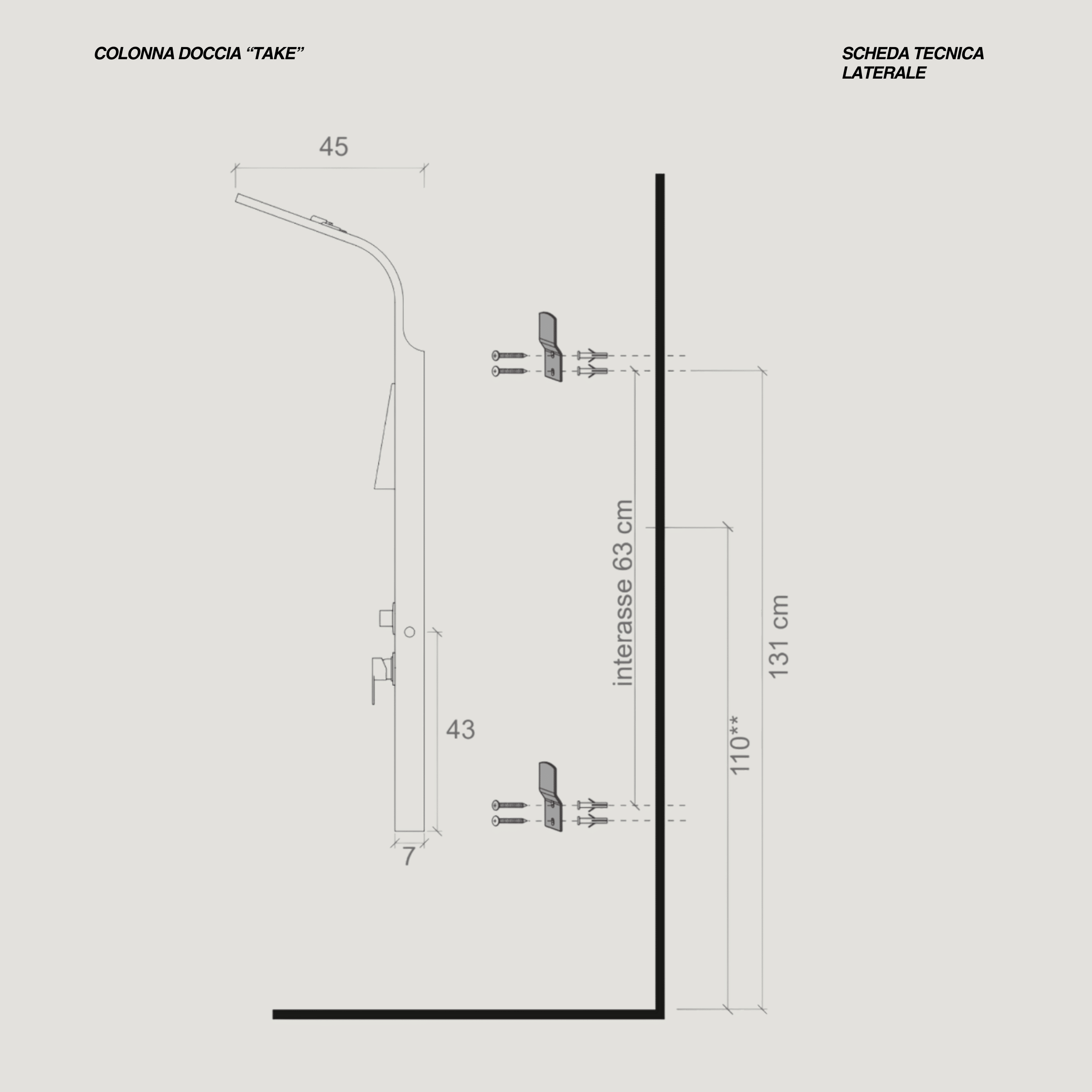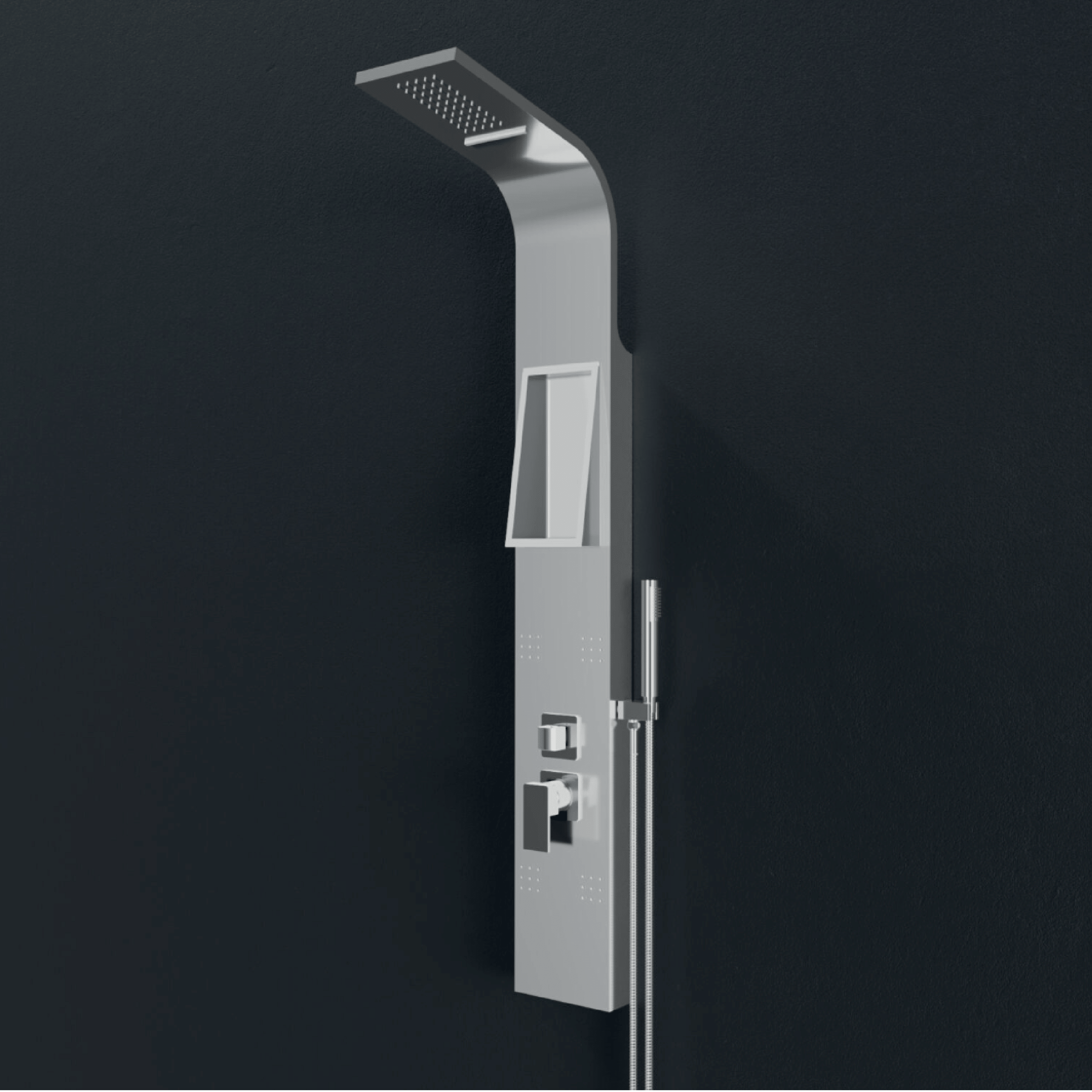 La colonna doccia è caratterizzata da una solida struttura in acciaio con finitura inox spazzolato ed è progettata per garantire funzionalità, comfort e durata nel tempo. È dotata di un deviatore a tre vie in ottone e di un miscelatore meccanico, che permettono di gestire in modo semplice e preciso le diverse uscite dell’acqua. La colonna integra getti dorsali per idroterapia e una cascata cervicale, ideali per offrire un’esperienza di benessere e relax durante la doccia. Completa la dotazione la doccetta monogetto in ABS, pratica e maneggevole, collegata tramite flessibile da 150 cm a doppia aggraffatura, sinonimo di resistenza e affidabilità. Le dimensioni complessive di 45 x 20 cm con altezza di 150 cm rendono questa colonna doccia ben proporzionata e adatta a bagni moderni, coniugando design elegante e prestazioni elevate.