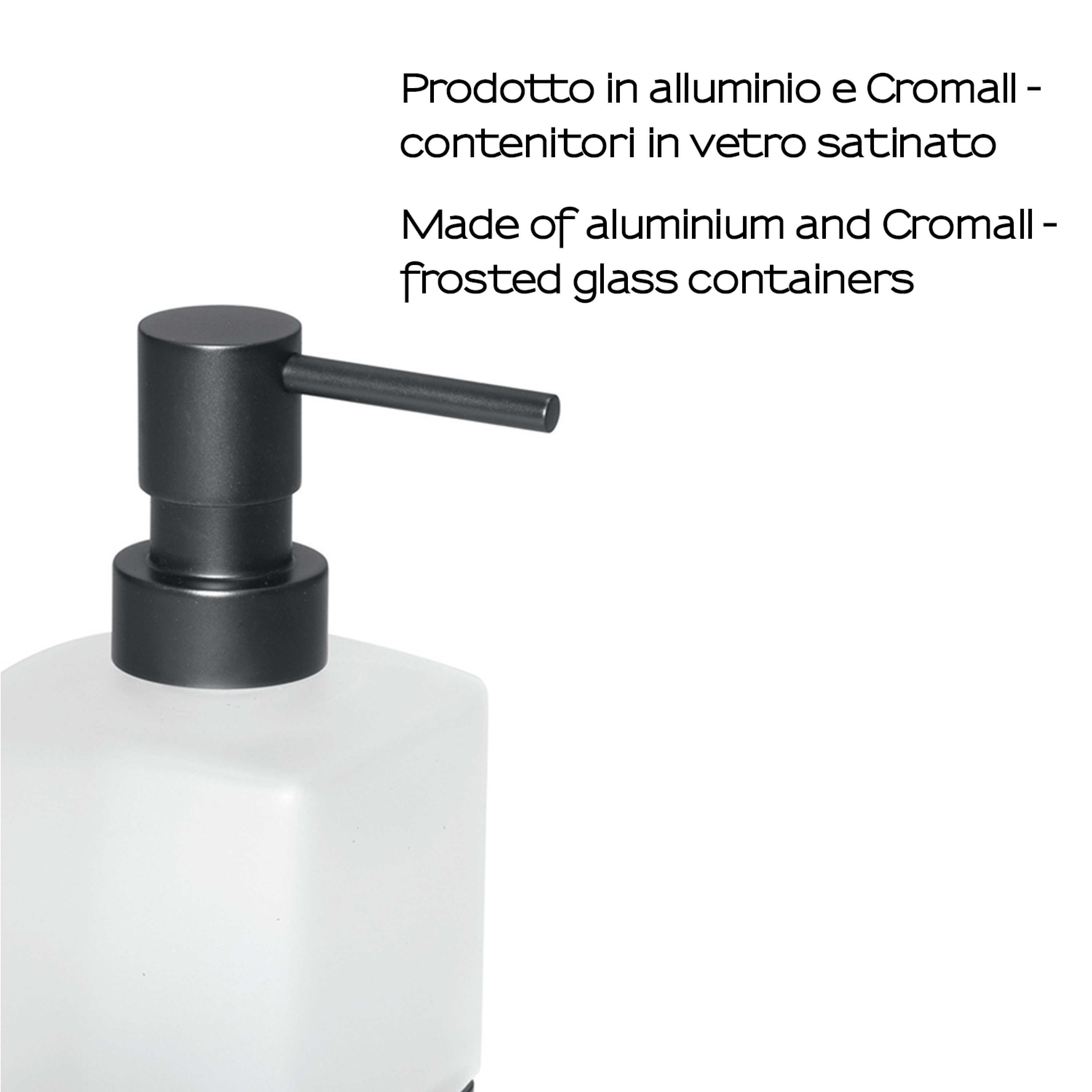 Il dosasapone d’appoggio in alluminio e cromall con vetro satinato è un accessorio elegante e funzionale, pensato per arricchire l’ambiente bagno con un tocco di modernità e ordine. La struttura in alluminio e cromall garantisce resistenza e durabilità, mentre il vetro satinato conferisce un aspetto raffinato e discreto, capace di integrarsi armoniosamente in diversi stili di arredamento.Con dimensioni di 9 x 6,8 cm e un’altezza di 15,6 cm, il prodotto risulta compatto ma al tempo stesso capiente, ideale per contenere il sapone liquido e mantenerlo sempre a portata di mano. La finitura satinata del vetro non solo aggiunge un dettaglio estetico di pregio, ma contribuisce anche a mascherare eventuali tracce d’uso, mantenendo l’accessorio sempre gradevole alla vista.Questo dosasapone non è soltanto un elemento pratico, ma un dettaglio di design che trasforma un oggetto quotidiano in un complemento d’arredo elegante e curato, perfetto per chi desidera unire funzionalità e stile contemporaneo nella propria sala da bagno.