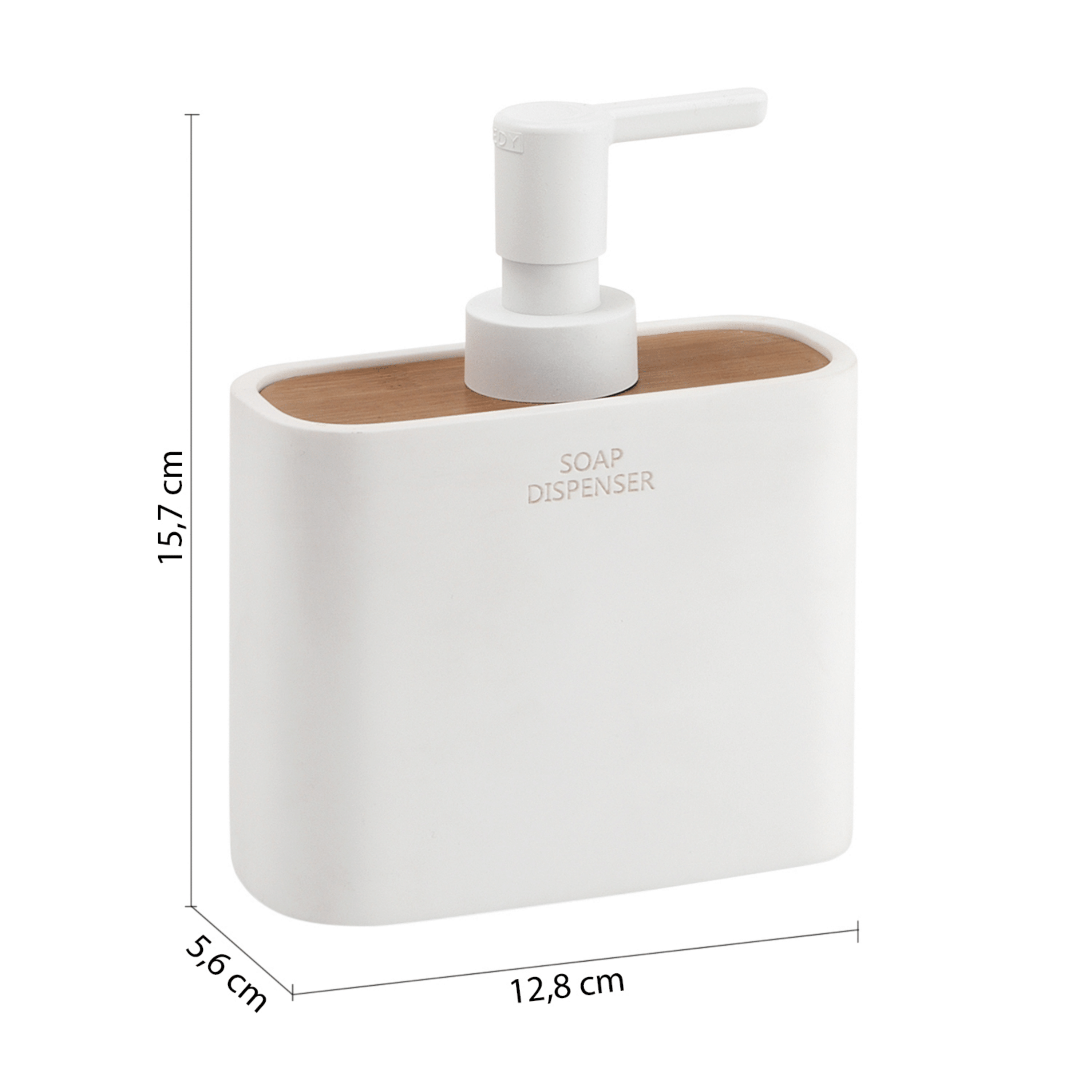 Il dosasapone d’appoggio in resina e bambù con erogatore in plastica finitura bianca unisce funzionalità e design naturale, offrendo un accessorio pratico e visivamente armonioso. Le dimensioni di 12,8 cm di larghezza, 5,6 cm di profondità e 15,7 cm di altezza lo rendono compatto e proporzionato, ideale per mantenere ordine sul piano del bagno senza rinunciare all’estetica. La resina garantisce resistenza e facilità di pulizia, mentre il bambù aggiunge un tocco caldo e materico che valorizza l’insieme. La finitura bianca, luminosa e versatile, permette al dosasapone di integrarsi con naturalezza in ambienti moderni e in bagni di qualsiasi tonalità, completando l’arredo con semplicità e stile.