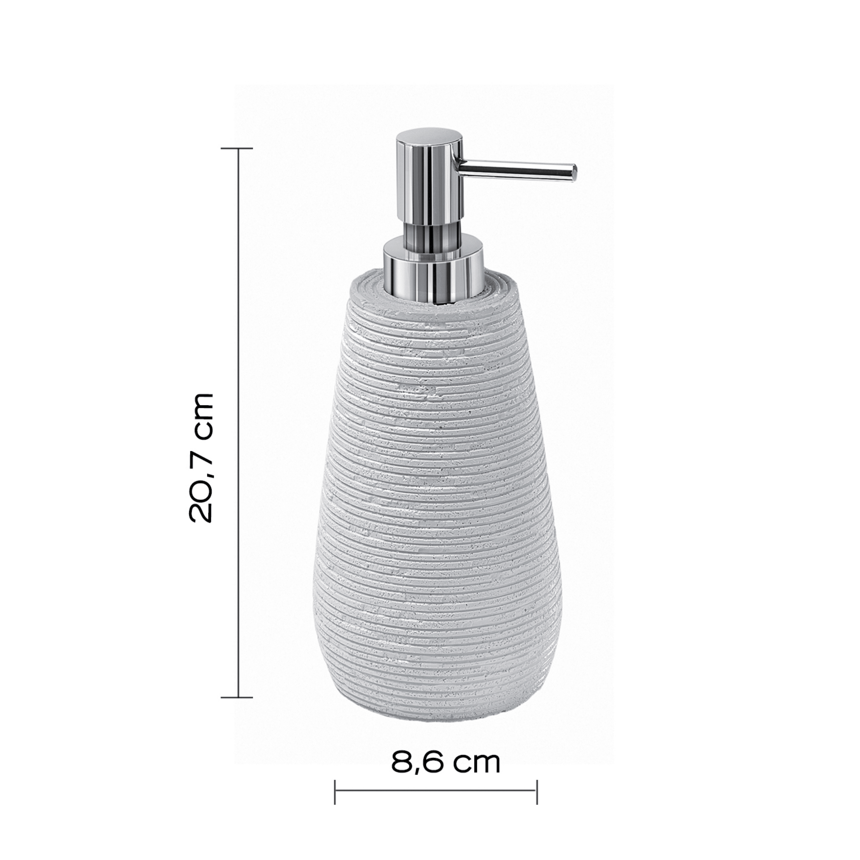 Questo portadispenser d’appoggio è realizzato in resina con finitura bianca e presenta un design elegante e funzionale, ideale per completare l’arredo del bagno con uno stile pulito e luminoso. Pensato per l’utilizzo quotidiano, consente di dosare il sapone in modo pratico e controllato, contribuendo a mantenere il lavabo ordinato e ben organizzato. La struttura stabile e compatta lo rende adatto a qualsiasi piano d’appoggio, integrandosi facilmente in ambienti bagno moderni, minimal o classici. Le dimensioni di 8,6 cm di larghezza, 9,4 cm di profondità e 20,7 cm di altezza lo rendono poco ingombrante ma capiente, perfetto per un utilizzo pratico ed elegante.