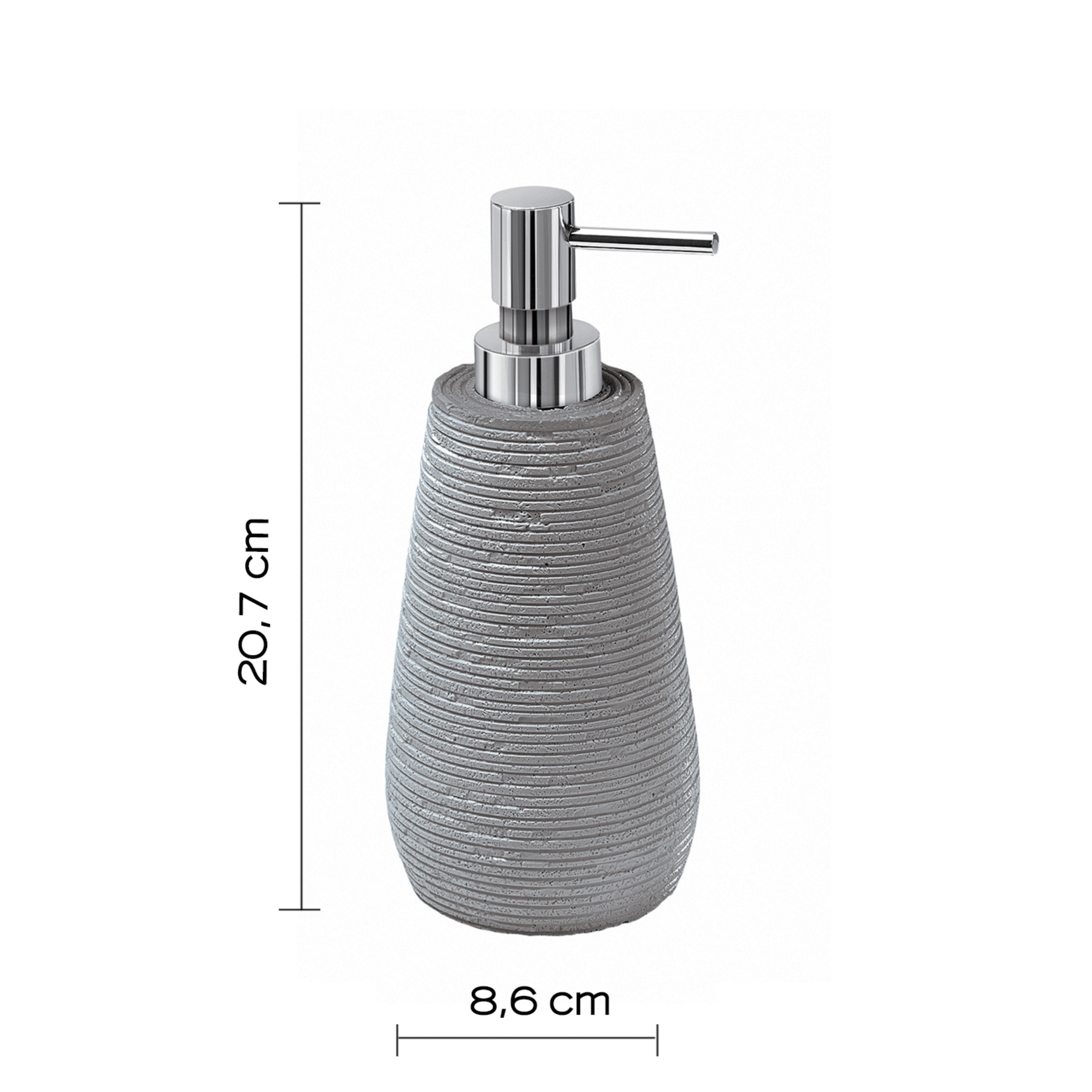Questo portadispenser d’appoggio è realizzato in resina con finitura grigio e presenta un design elegante e funzionale, ideale per completare l’arredo del bagno con uno stile pulito e luminoso. Pensato per l’utilizzo quotidiano, consente di dosare il sapone in modo pratico e controllato, contribuendo a mantenere il lavabo ordinato e ben organizzato. La struttura stabile e compatta lo rende adatto a qualsiasi piano d’appoggio, integrandosi facilmente in ambienti bagno moderni, minimal o classici. Le dimensioni di 8,6 cm di larghezza, 9,4 cm di profondità e 20,7 cm di altezza lo rendono poco ingombrante ma capiente, perfetto per un utilizzo pratico ed elegante.