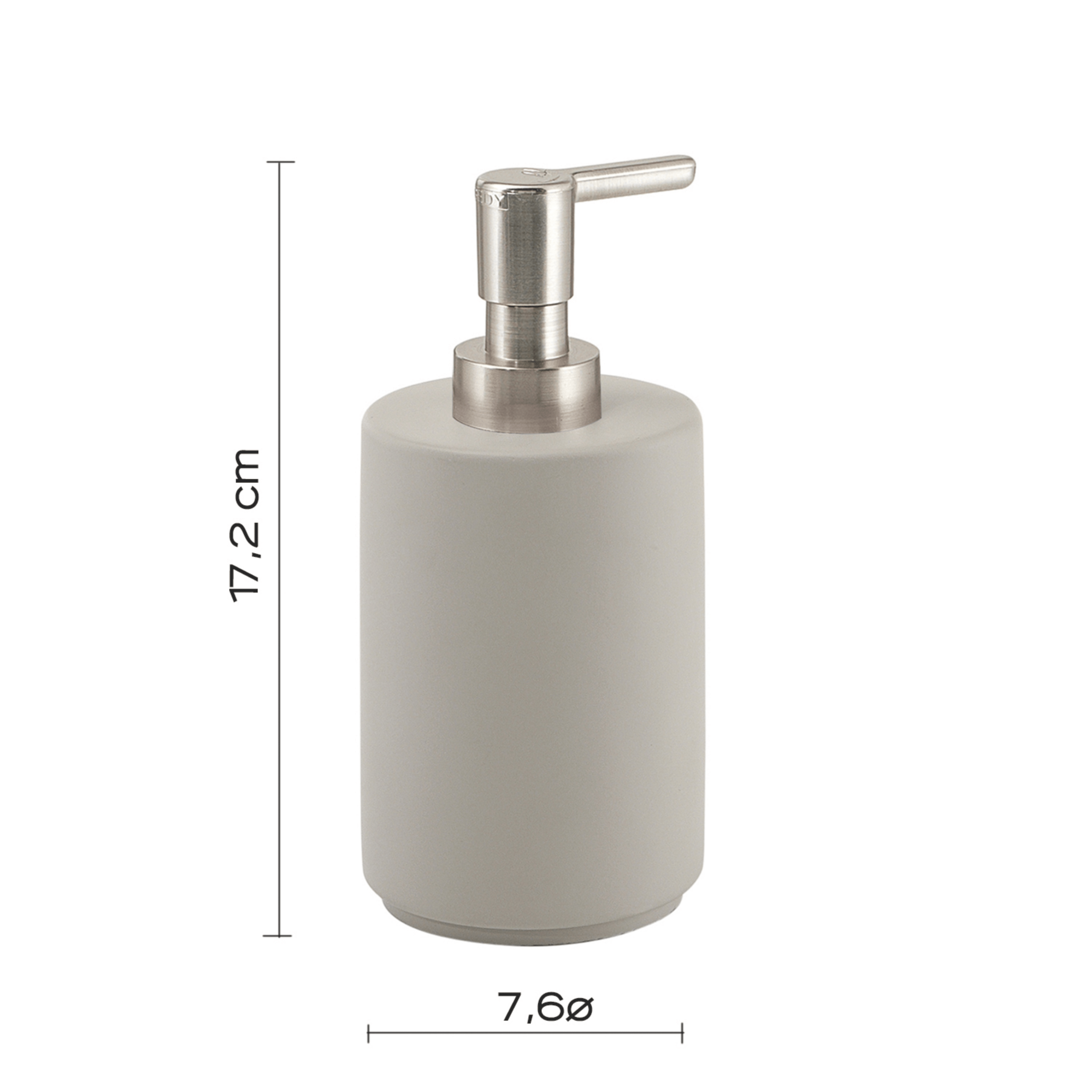 Il portadispenser d’appoggio in cemento con erogatore in plastica nichel lucido si distingue per il suo design sobrio e contemporaneo, trasformando un accessorio funzionale in un dettaglio elegante e raffinato. La finitura cemento, uniforme e materica, richiama l’estetica industriale e si inserisce con naturalezza in ambienti moderni e minimalisti, conferendo un senso di ordine e pulizia. L’erogatore in plastica con finitura nichel lucido aggiunge un tocco di brillantezza e contrasto, esaltando la solidità del corpo in cemento e rendendo l’insieme armonioso e sofisticato. Con un diametro di 8,2 cm e un’altezza di 17,5 cm, la sua forma proporzionata e slanciata è studiata per garantire stabilità e praticità, offrendo al tempo stesso un impatto visivo equilibrato. La scelta del cemento come materiale non è soltanto estetica: la sua robustezza e resistenza assicurano durata nel tempo e una piacevole sensazione tattile, rendendo questo portadispenser un complemento affidabile e duraturo. Non si limita a contenere sapone liquido o detergenti, ma diventa un elemento capace di arricchire l’atmosfera del bagno con un tocco di eleganza discreta e contemporanea.