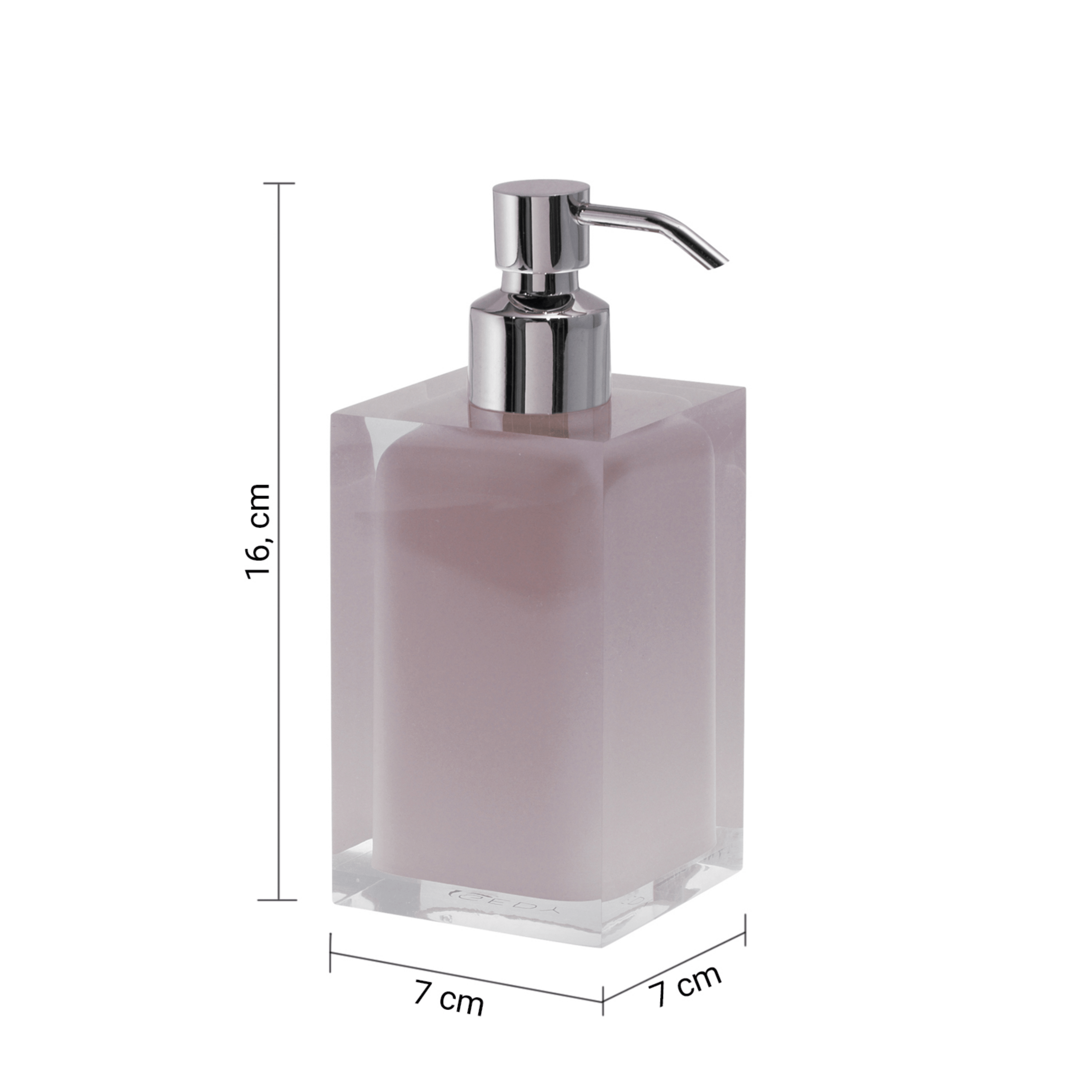 Questo portadispenser d’appoggio è realizzato in resina con finitura rosa e completato da un erogatore in metallo con finitura cromata, una combinazione che dona al prodotto un aspetto elegante e raffinato, ideale per valorizzare l’ambiente bagno. Pensato per l’utilizzo quotidiano, consente di dosare il sapone in modo pratico e controllato, contribuendo a mantenere il lavabo ordinato e funzionale. Il design essenziale e compatto si integra facilmente in diversi stili di arredo, dal moderno al minimal fino al classico. La struttura stabile garantisce un appoggio sicuro su qualsiasi piano, mentre le dimensioni di 7 cm di larghezza, 7 cm di profondità e 16,2 cm di altezza lo rendono poco ingombrante ma capiente, perfetto per un uso pratico ed elegante.