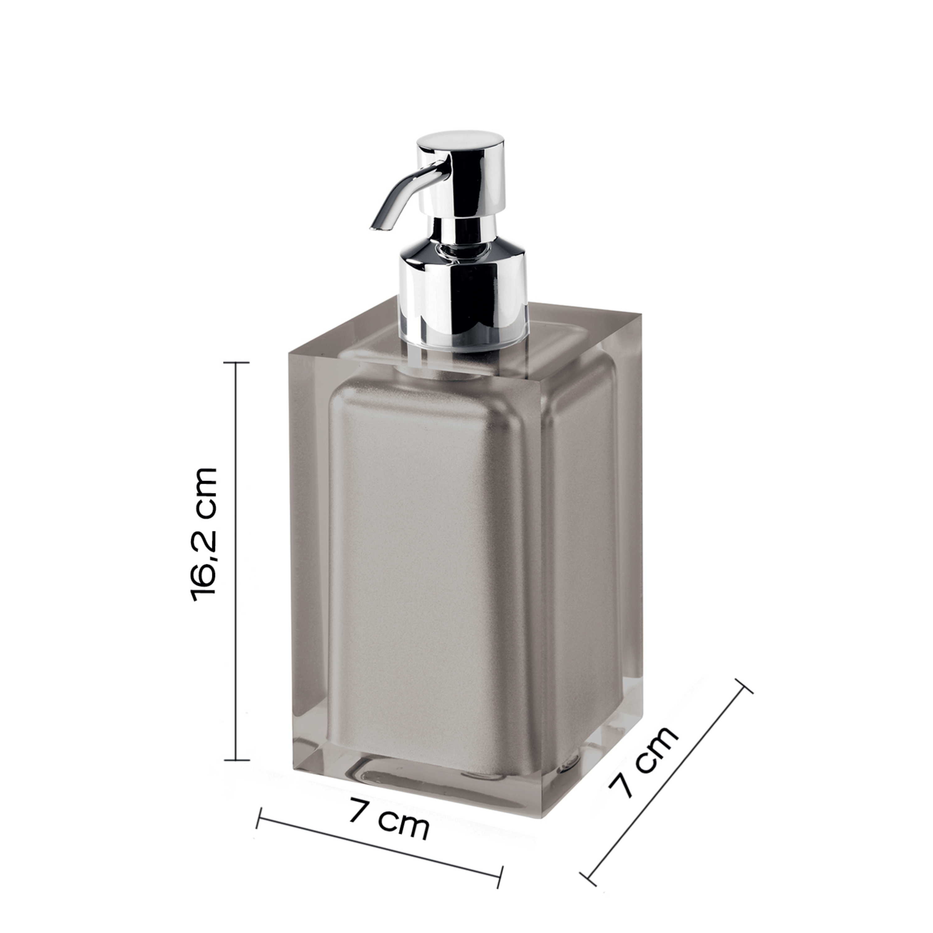 Questo portadispenser d’appoggio è realizzato in resina con finitura tortora e completato da un erogatore in metallo con finitura cromata, una combinazione che dona al prodotto un aspetto elegante e raffinato, ideale per valorizzare l’ambiente bagno. Pensato per l’utilizzo quotidiano, consente di dosare il sapone in modo pratico e controllato, contribuendo a mantenere il lavabo ordinato e funzionale. Il design essenziale e compatto si integra facilmente in diversi stili di arredo, dal moderno al minimal fino al classico. La struttura stabile garantisce un appoggio sicuro su qualsiasi piano, mentre le dimensioni di 7 cm di larghezza, 7 cm di profondità e 16,2 cm di altezza lo rendono poco ingombrante ma capiente, perfetto per un uso pratico ed elegante.