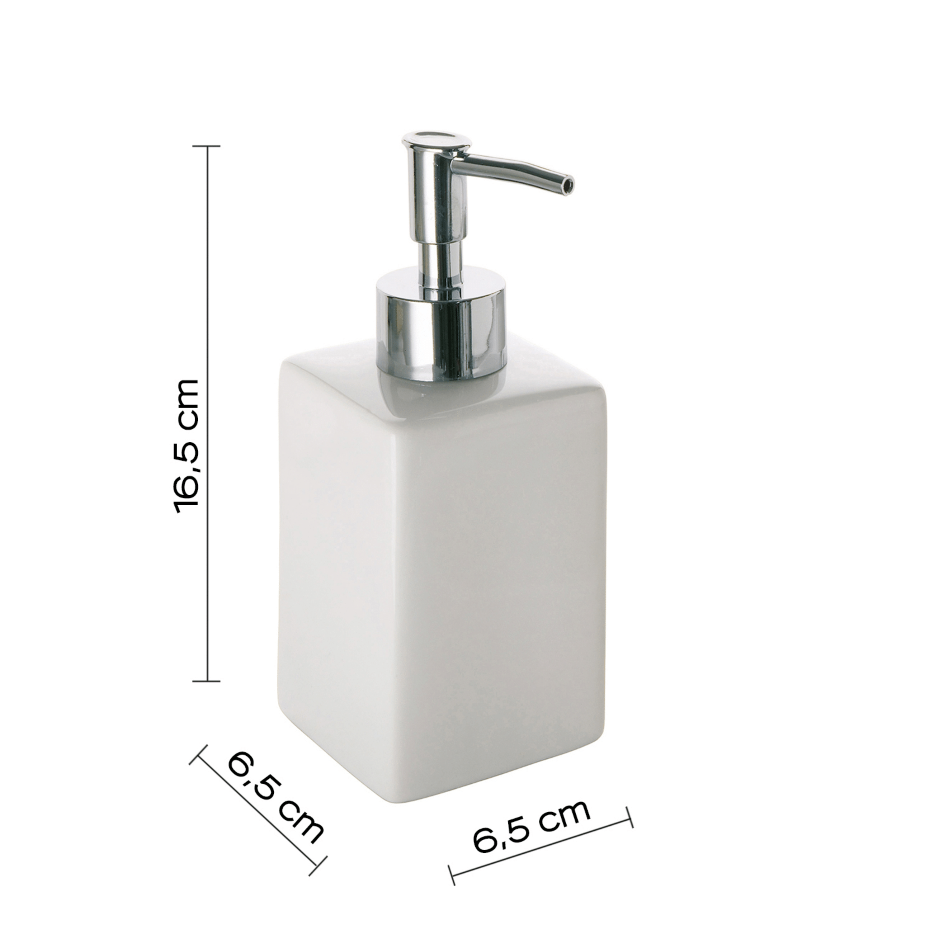Il portadispenser d’appoggio in ceramica con erogatore in plastica cromata unisce semplicità e raffinatezza, trasformando un accessorio quotidiano in un dettaglio di design essenziale. La ceramica, luminosa e senza tempo, dona al bagno un senso di ordine e pulizia, mentre l’erogatore cromato aggiunge una nota moderna e brillante, ideale per ambienti contemporanei o classici.Con dimensioni di 6,5 cm di larghezza, 6,5 cm di profondità e 16,5 cm di altezza, presenta una forma compatta e ben proporzionata, studiata per garantire stabilità e praticità nell’uso quotidiano. La qualità dei materiali assicura resistenza e durata, rendendo questo portadispenser un complemento discreto ma elegante, perfetto per valorizzare qualsiasi piano d’appoggio.