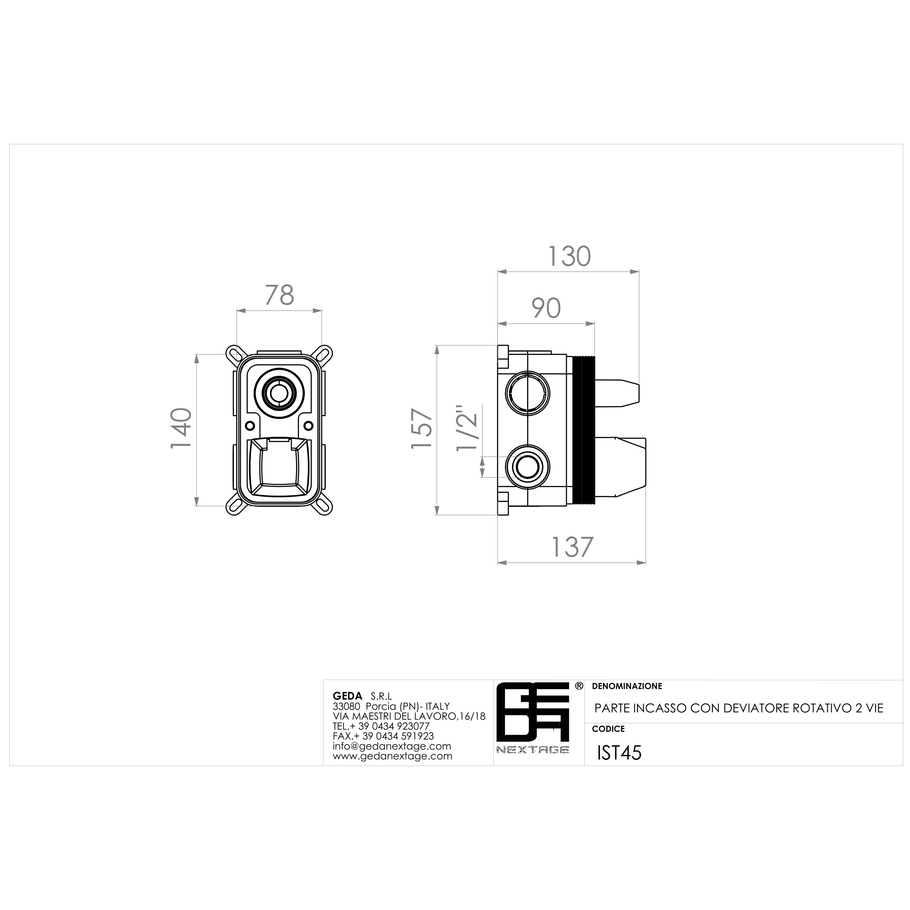 Miscelatore Doccia Ad Incasso Con Deviatore a 2 Vie Geda "Roon" Cromo Lucido