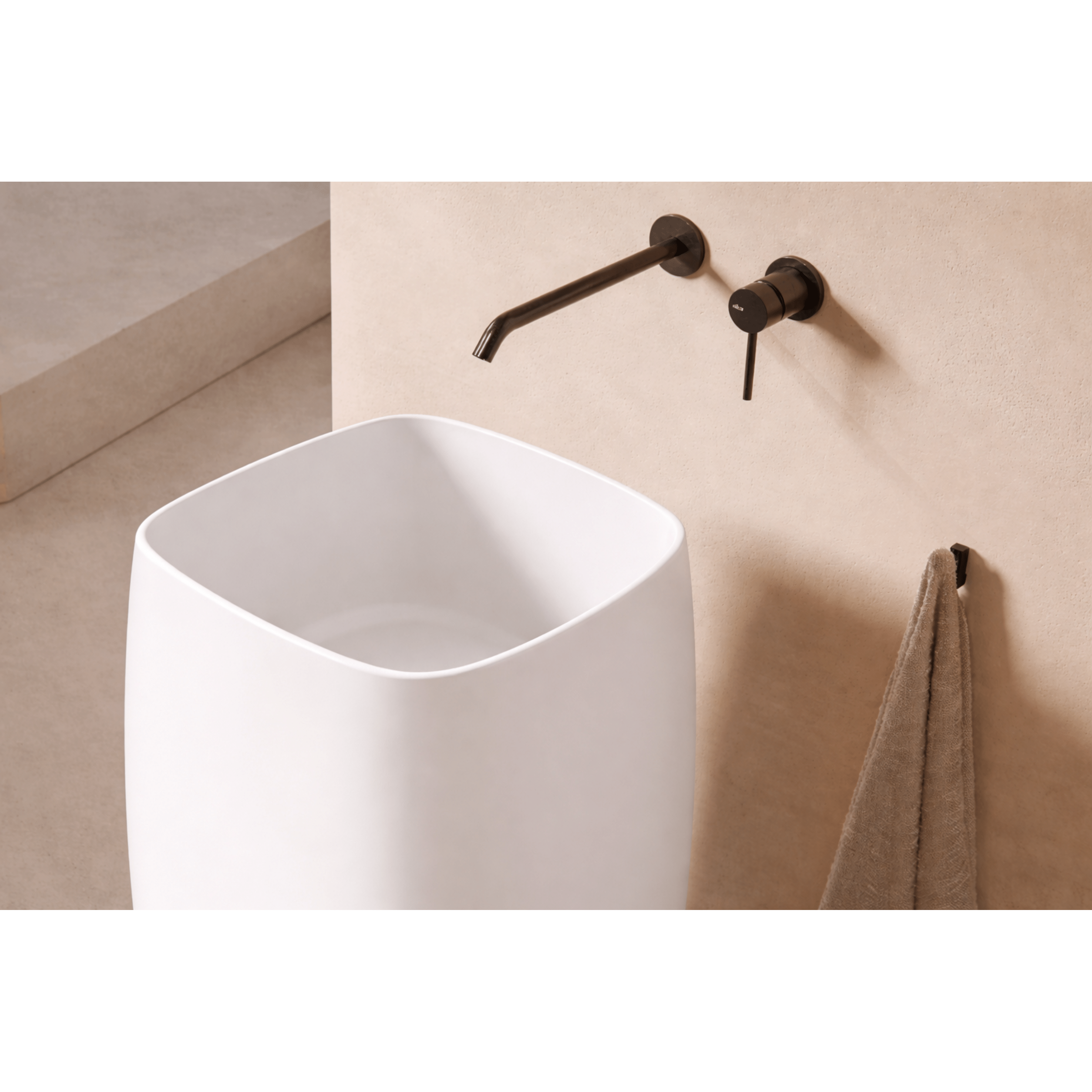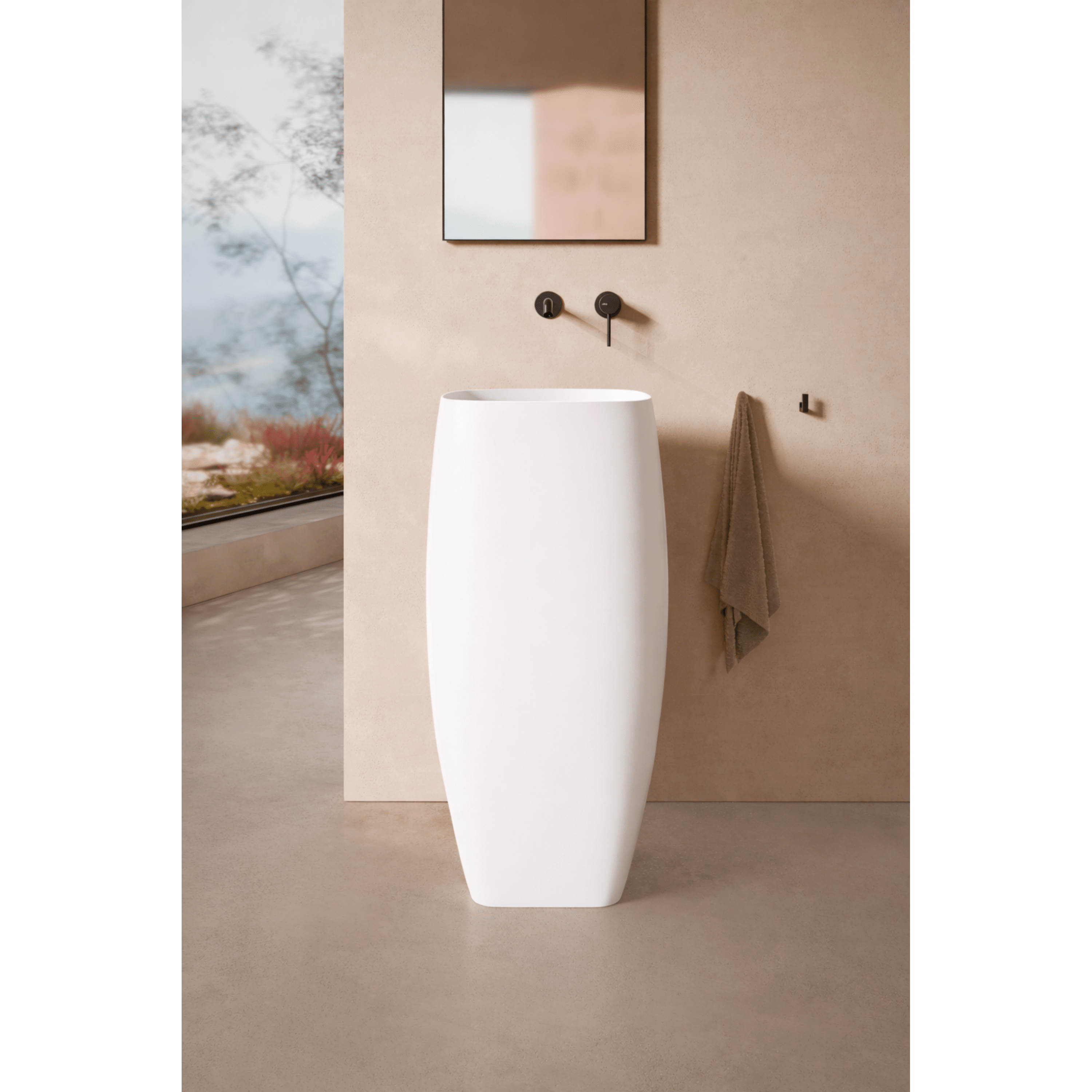 Il lavabo freestanding è una soluzione ideale da inserire nel proprio bagno come sostituto del tradizionale mobile bagno. Si tratta di un prodotto di altissima qualità, realizzato interamente in ceramica con scarico a parete e raffinata finitura bianco opaco.La superficie è trattata con smalto antibatterico, che protegge fino al 99,99% dai batteri, grazie agli ioni di argento, titanio e zinco.Come visibile in foto, il lavabo non è predisposto con fori per la rubinetteria, pertanto richiede l’installazione di un miscelatore a parete, valorizzando ulteriormente il design moderno ed essenziale dell’ambiente bagno.
