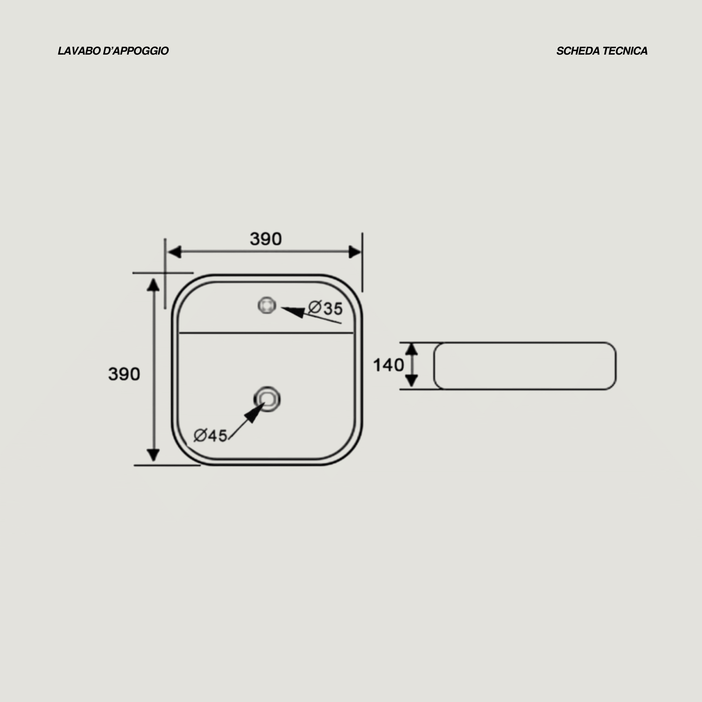 - Tipologia Prodotto: Lavabo D'Appoggio
