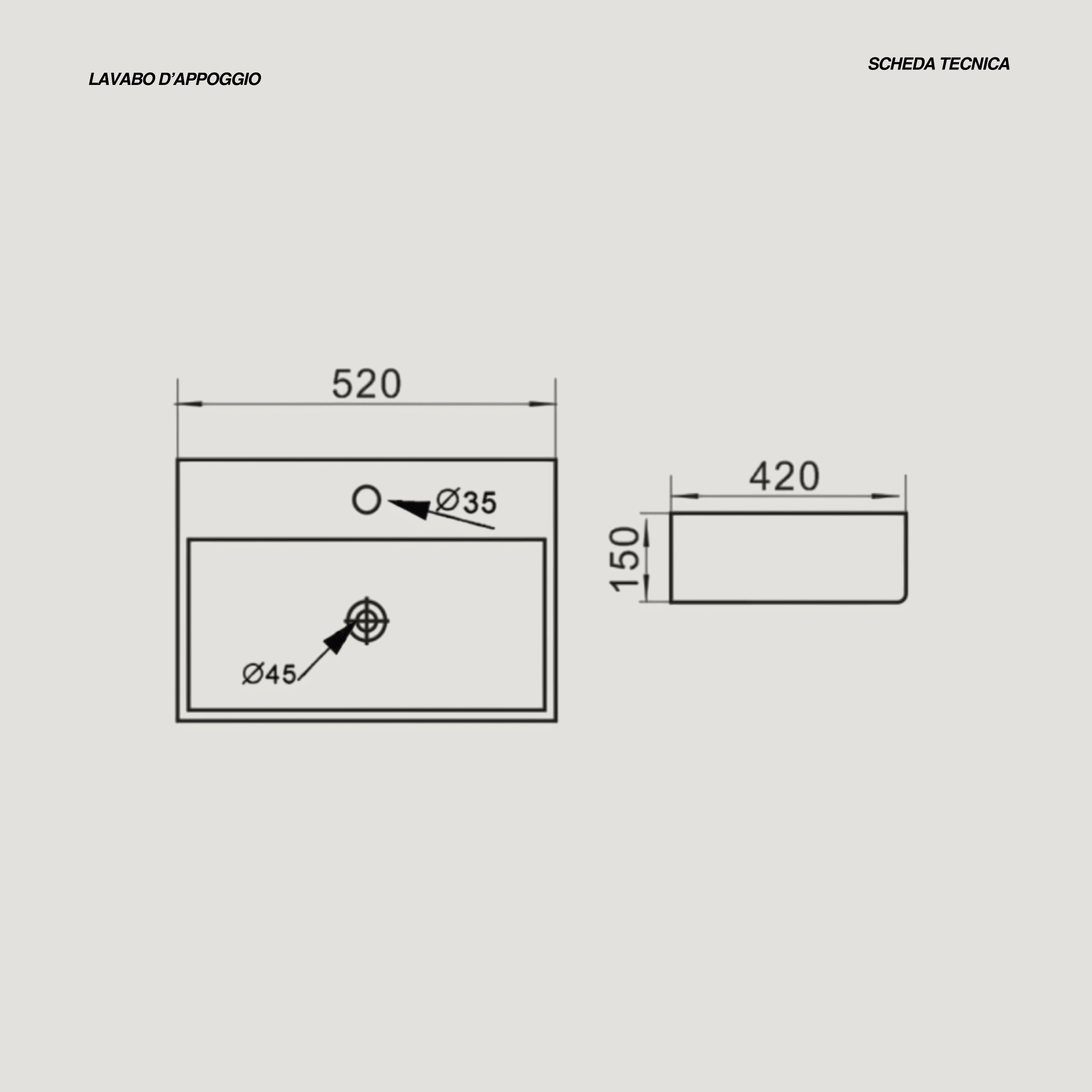 • Tipologia Prodotto: Lavabo D'Appoggio o Sospeso