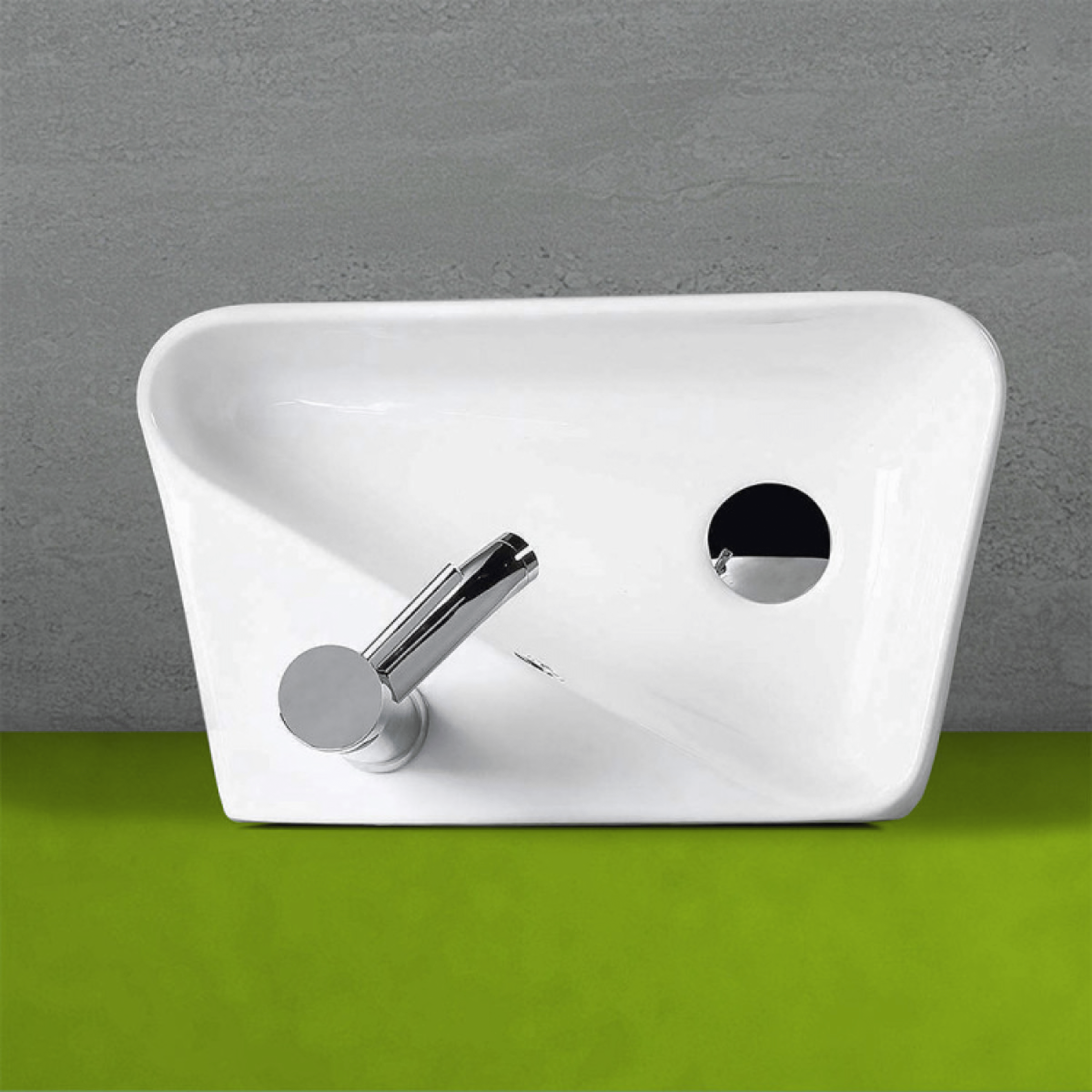 Il lavabo sospeso è disponibile con la versione del foro per la rubinetteria a destra, realizzato in ceramica favorisce a mantenere sempre il prodotto igiene favorendo cosi la massima pulizia e la massima cura.