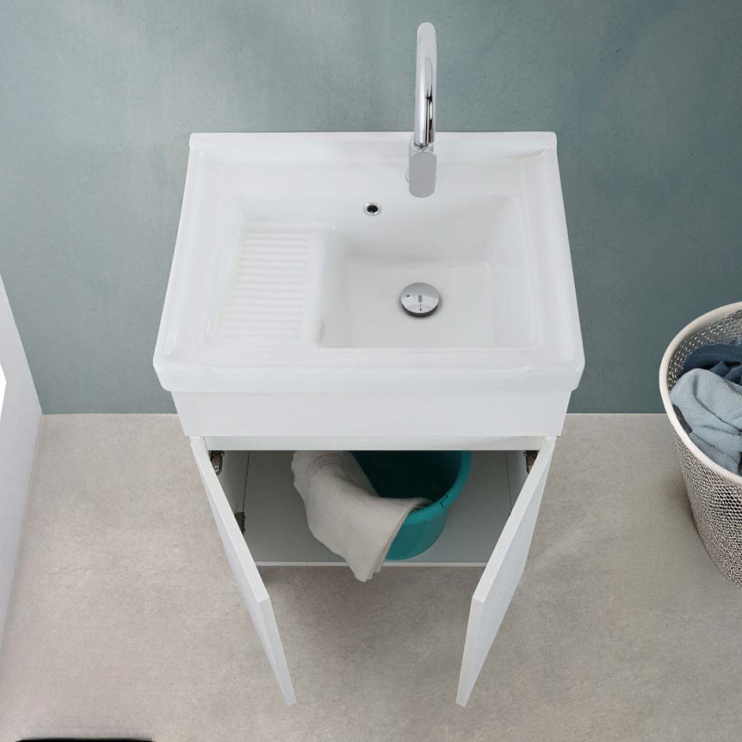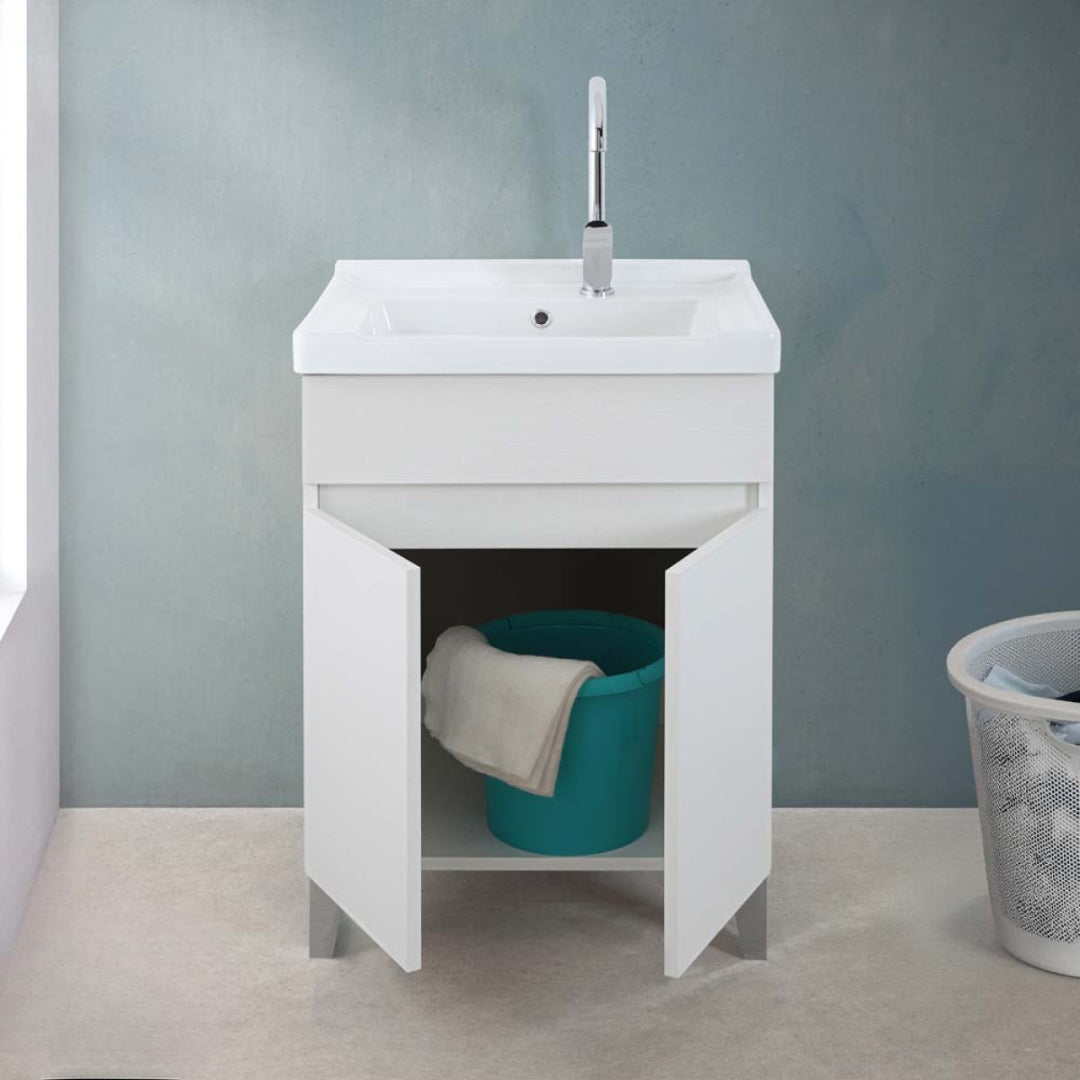 Lavatoio a Terra 60x46,8 Due Ante Con Vasca Feridras "Alba" Bianco Frassinato
