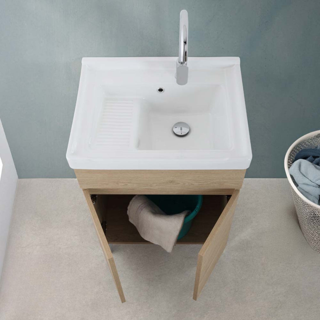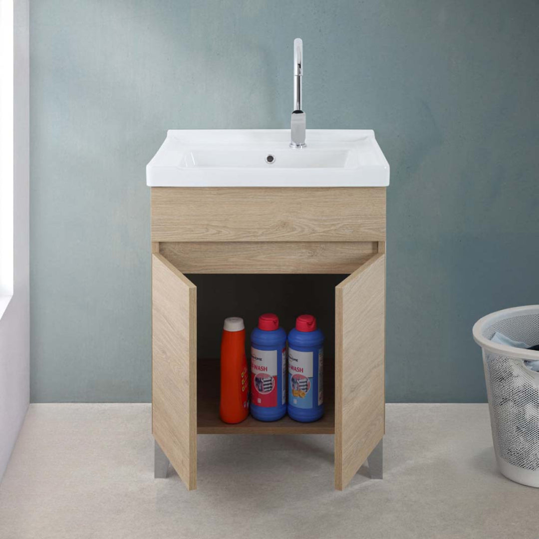 Lavatoio a Terra 60x46,8 Due Ante Con Vasca Feridras "Alba" Rovere Dolomite