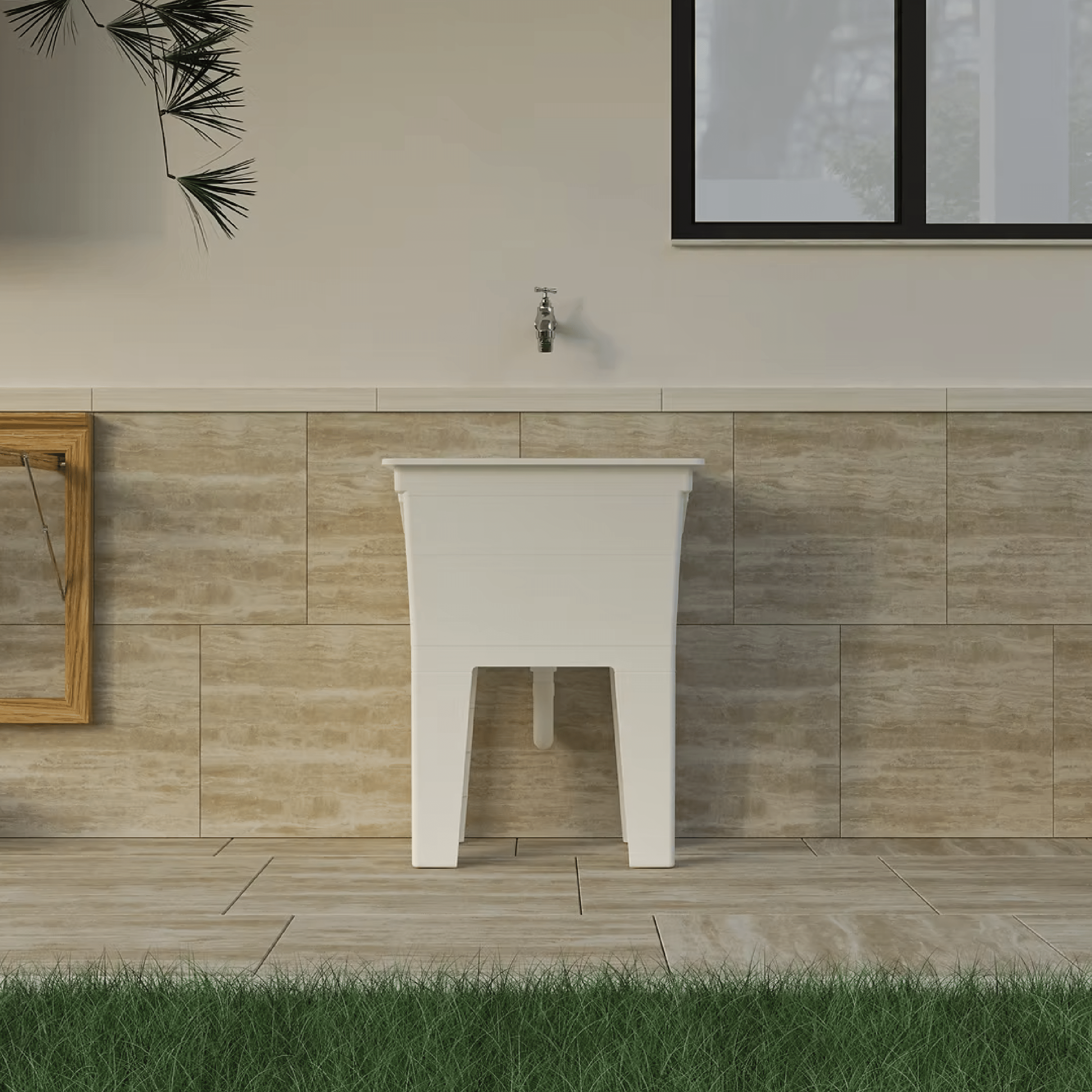 Lavatoio a Terra 60x40 Cm Monoblocco Per Esterno/Interno Mongardi "Outdoor" Bianco