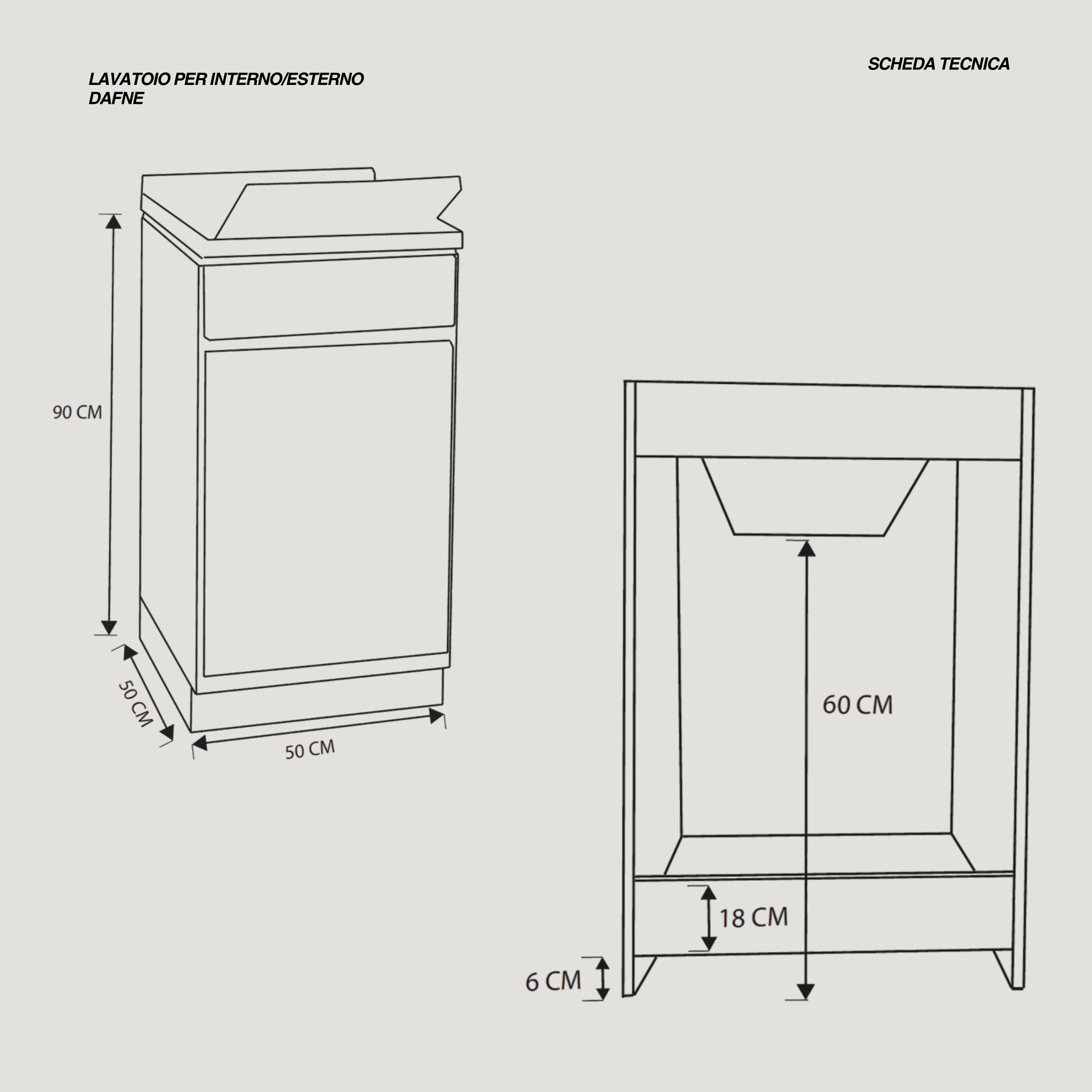 Lavatoio a Terra Per Interno/Esterno 50x50 Un'Anta Apertura Scorrevole Con Vasca Sifone e Tavoletta "Dafne" Bianco
