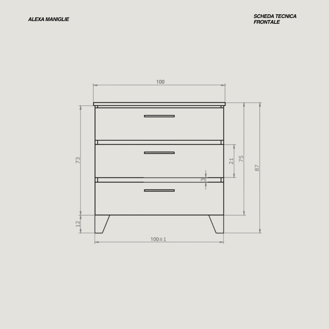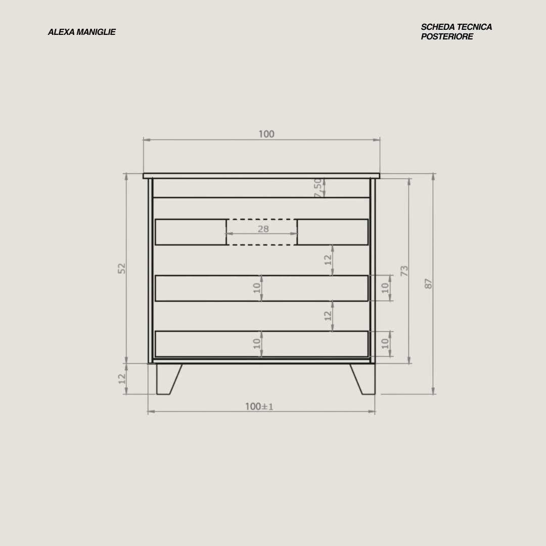 • Misure base: L 100 x P 46 x H 87 (cm)