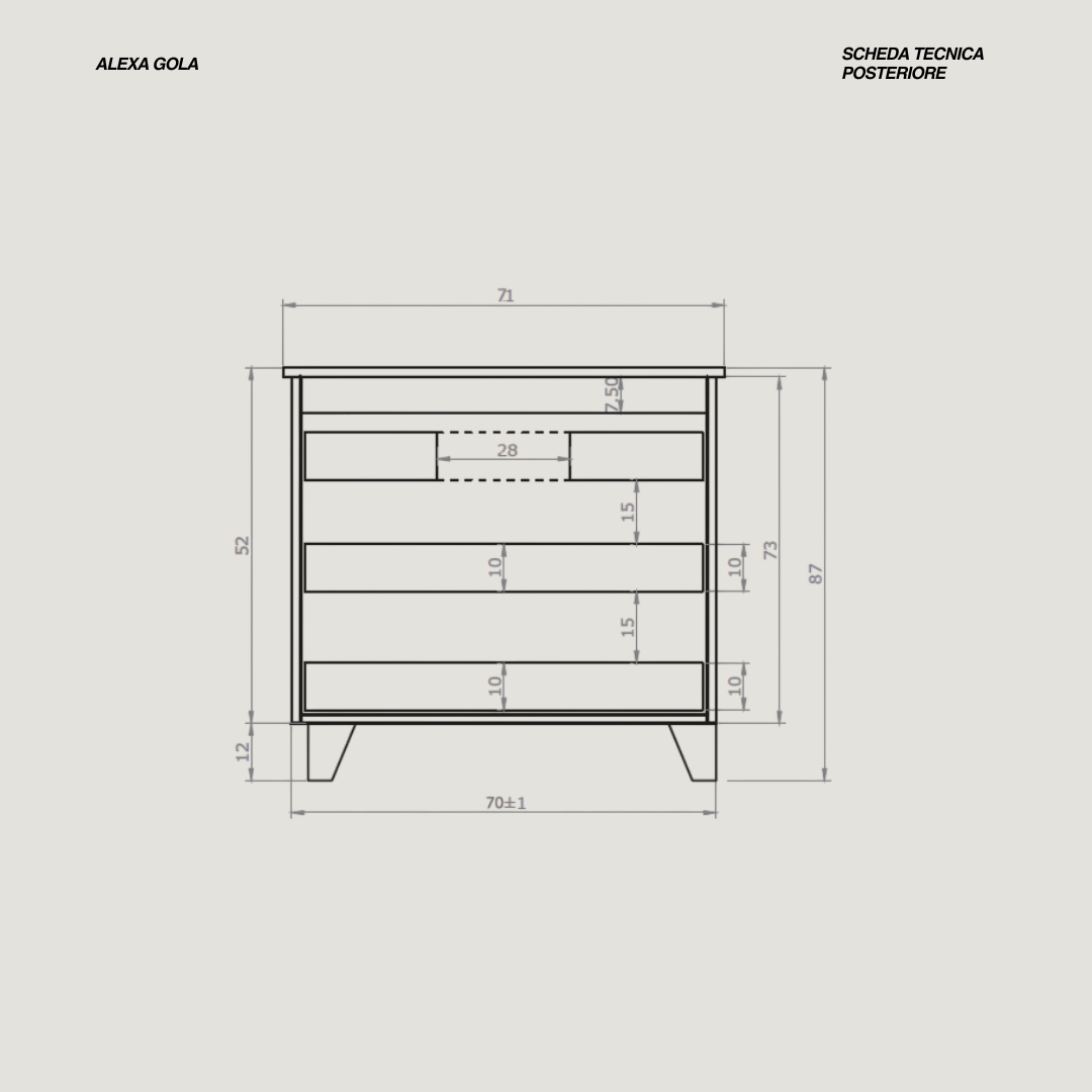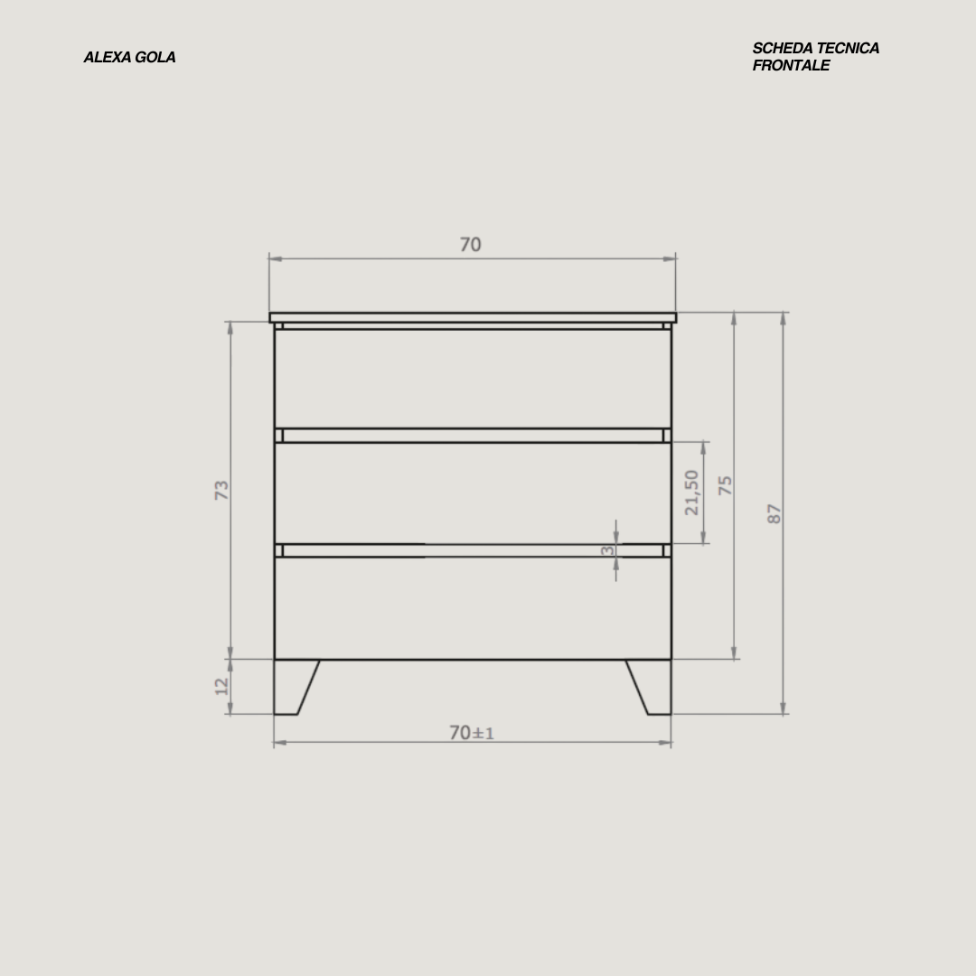• Misure base: L 70 x P 46 x H 87 (cm)
