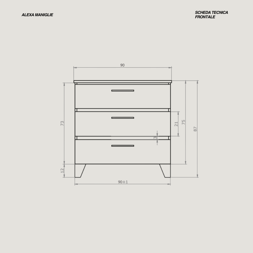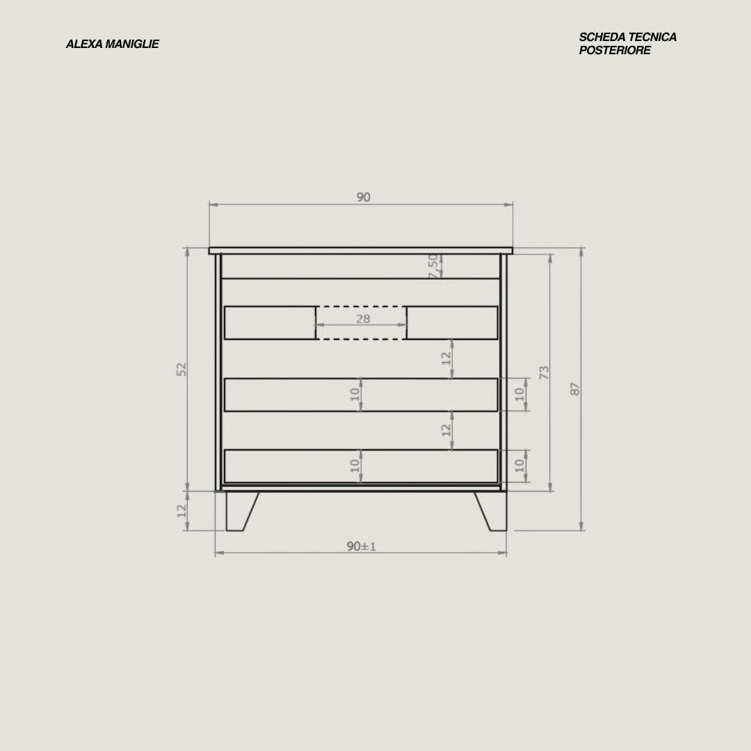 - Misure base: L 70 x P 46 x H 87 (cm)