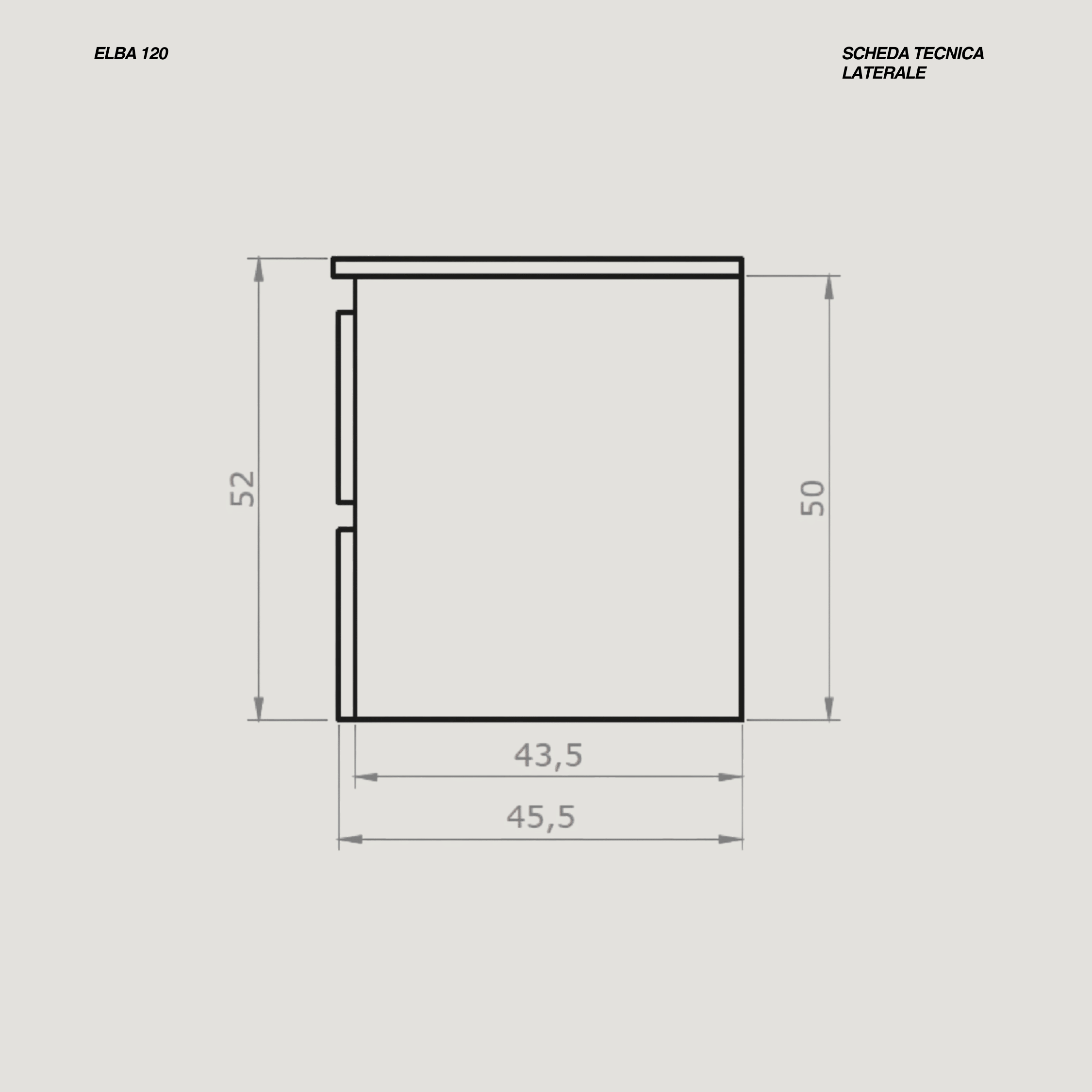- Misure prodotto: L 120 x P 46 x H 50 (cm)