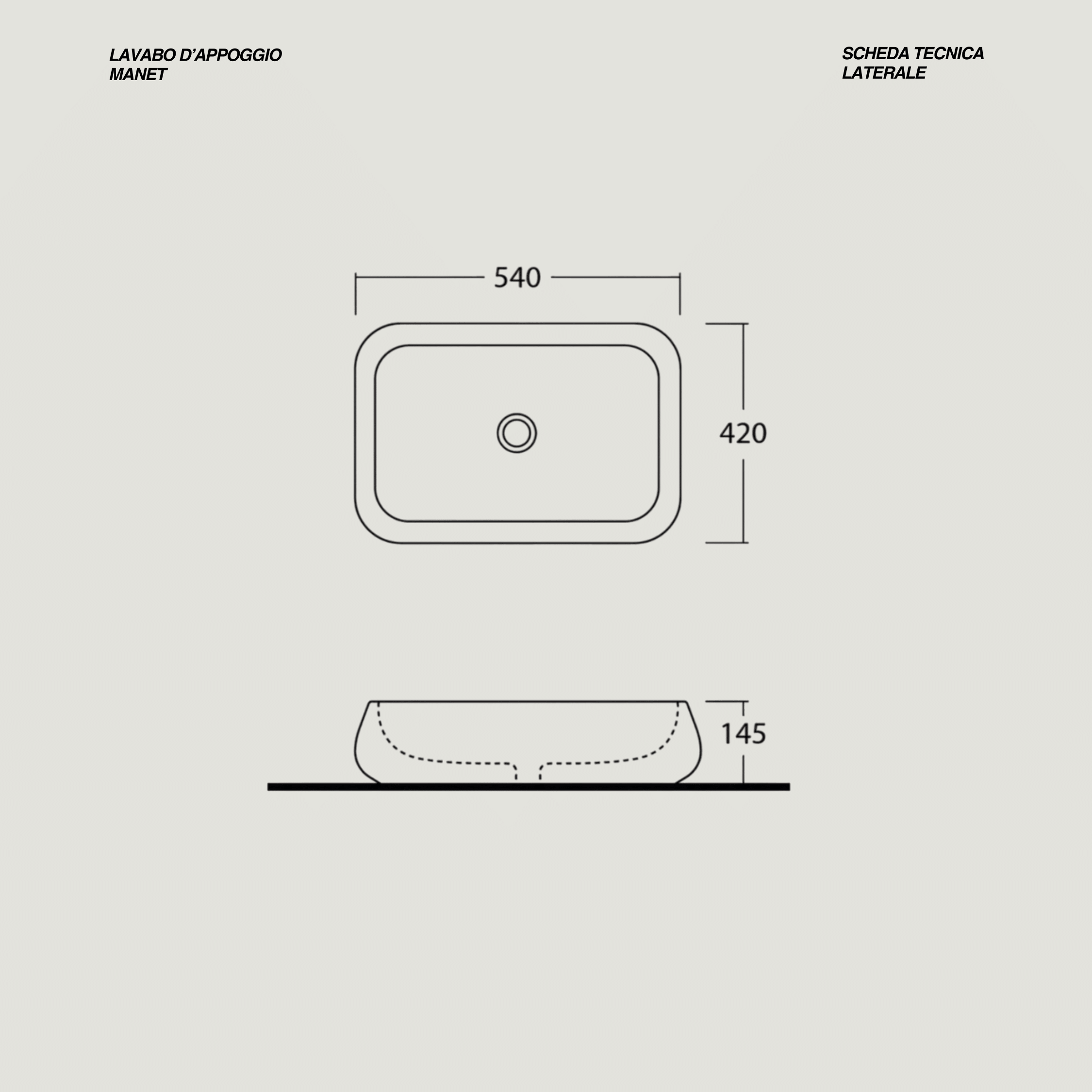 - Misure lavabo: L 54 x H 14,5 x P 42 (cm)
