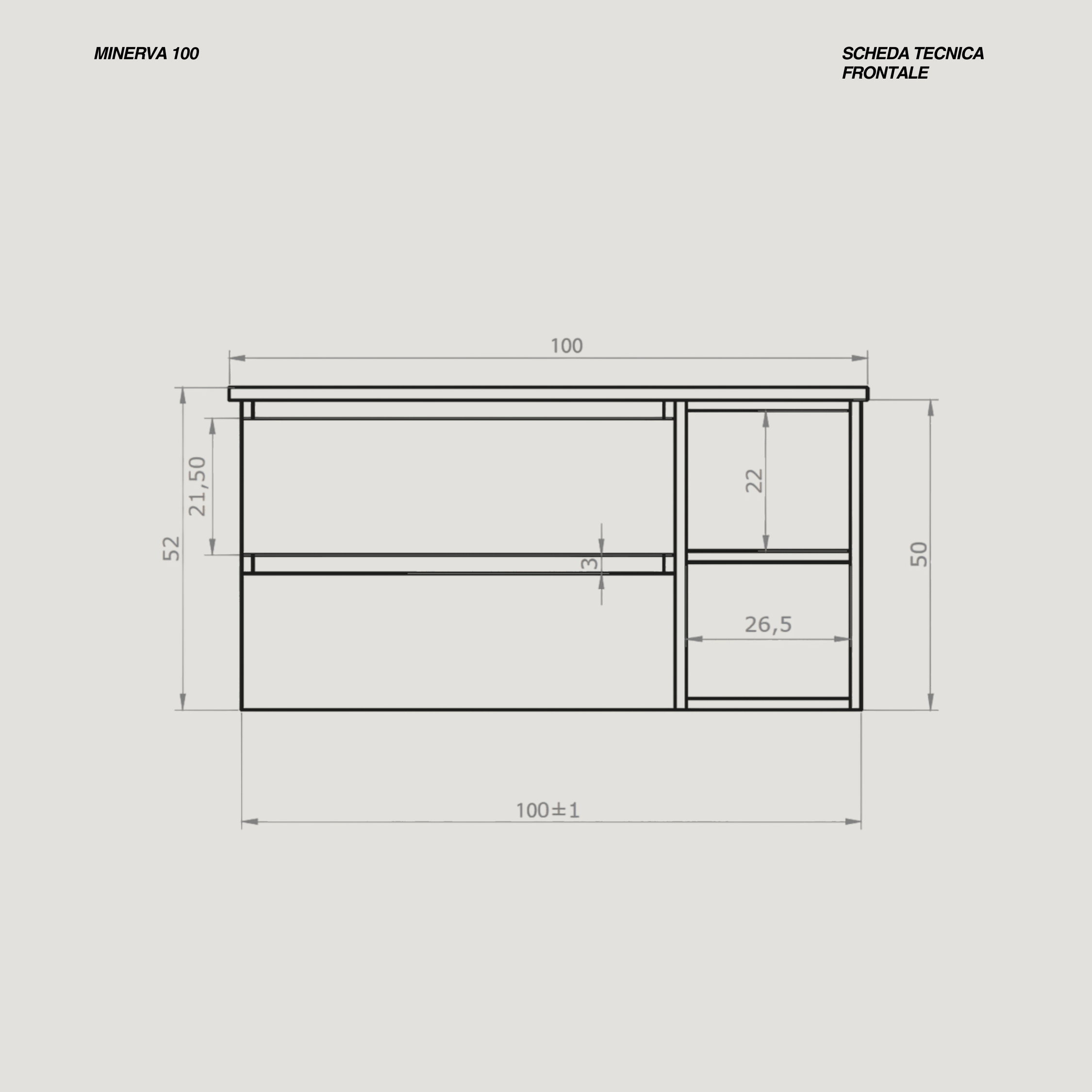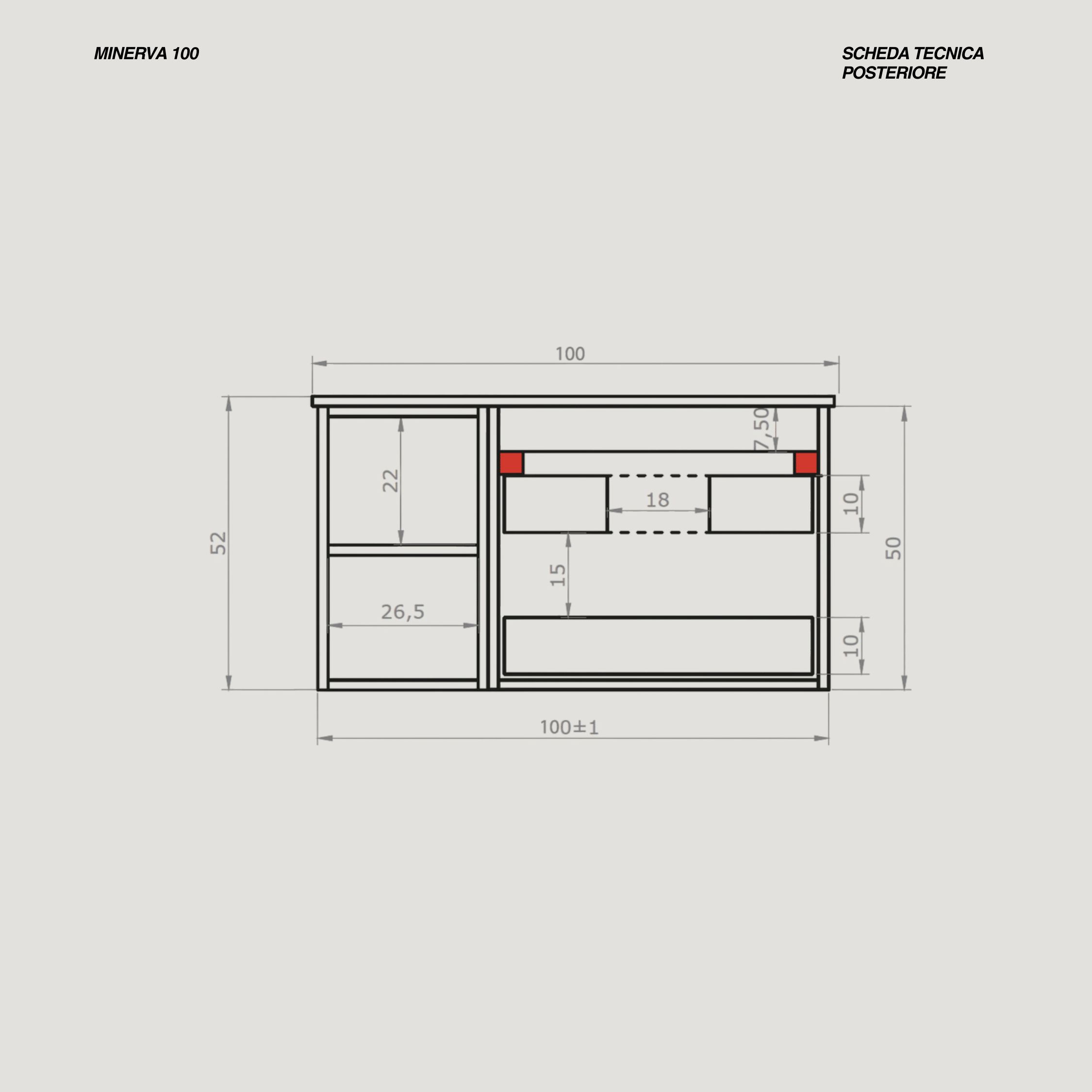 - Misure prodotto: L 100 x H 52 x P 46 (cm)