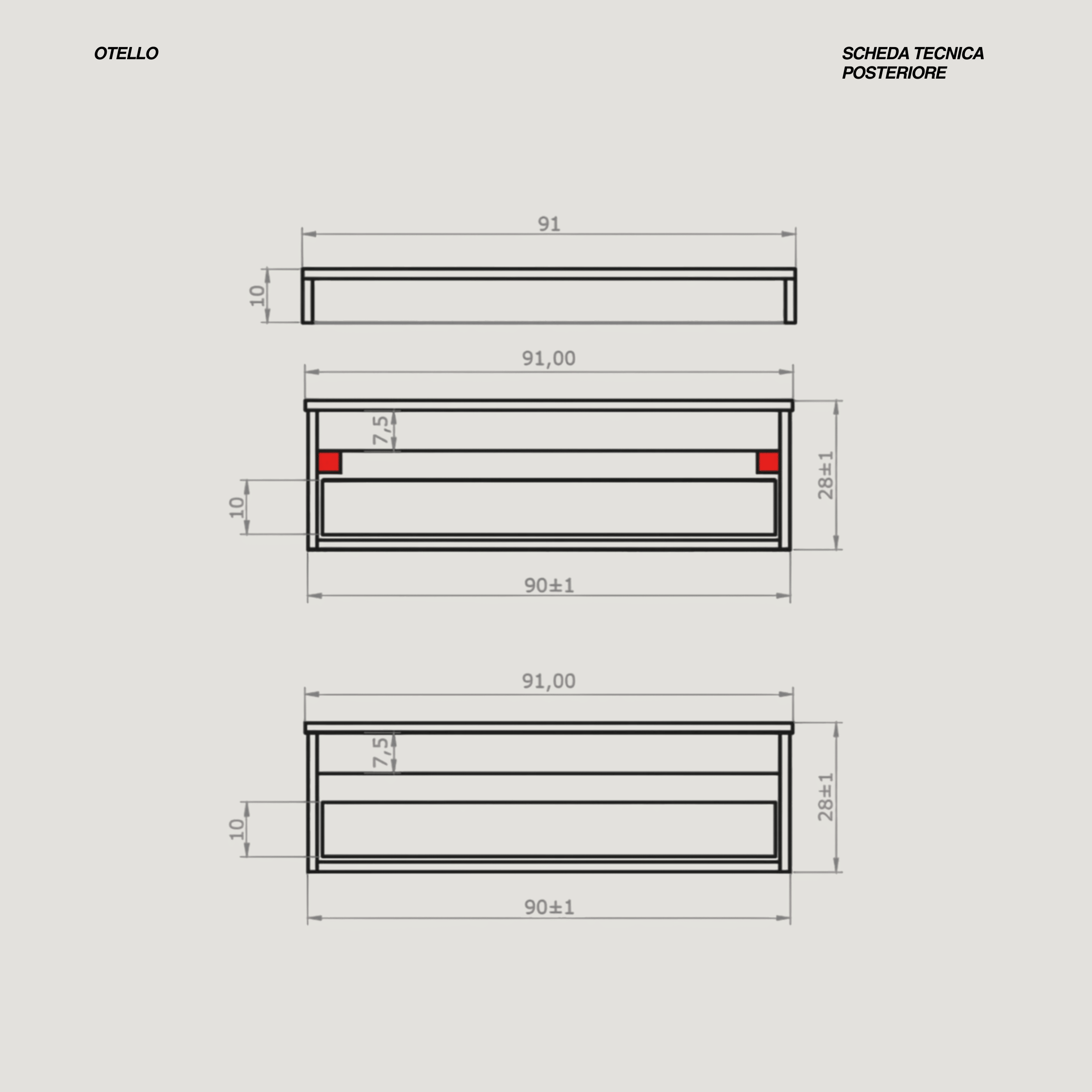 - Misure base superiore: L 90 x H 28 x P 46 (cm)