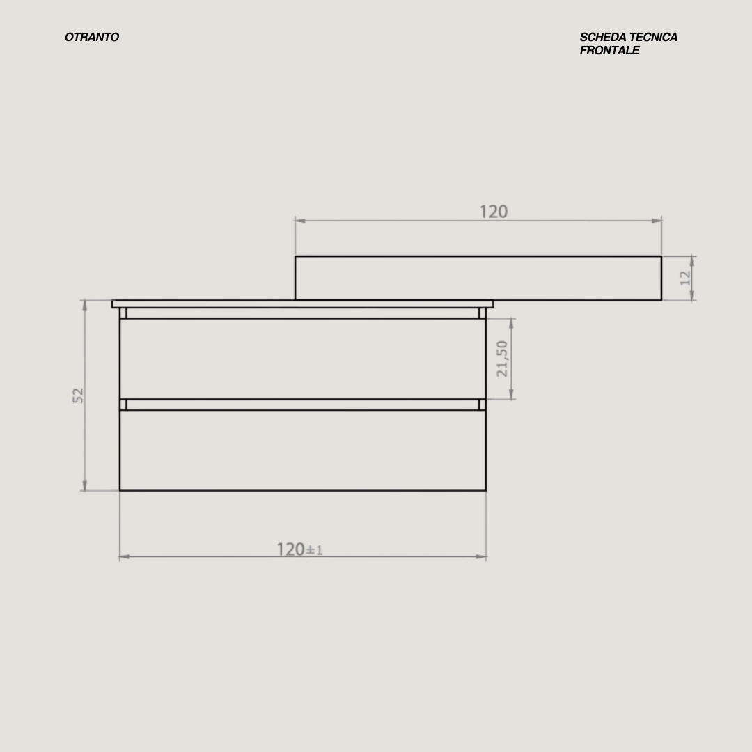 - Misure lavabo: L 120 x H 12 x P 46 (cm)