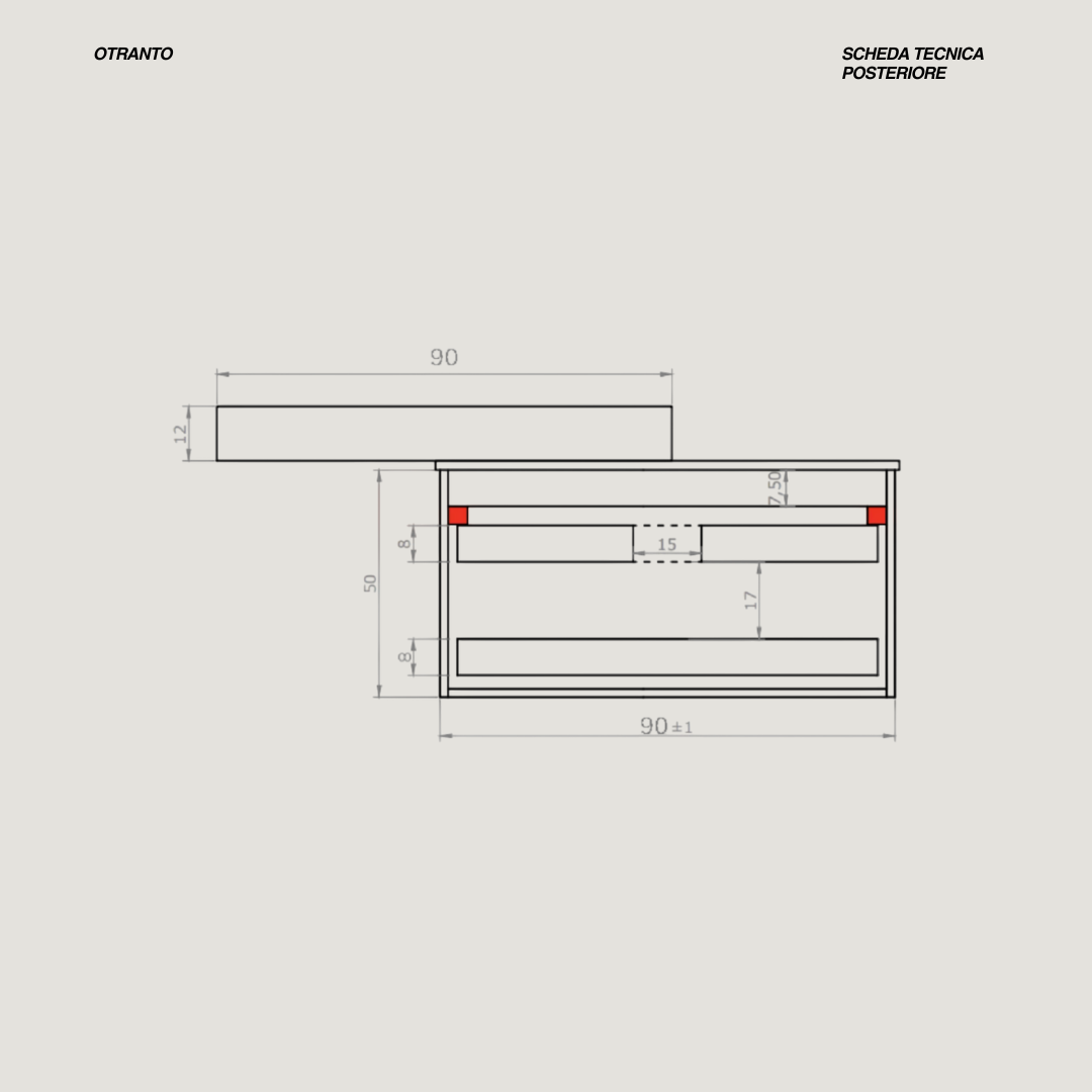 - Misure lavabo: L 90 x H 12 x P 46 (cm)