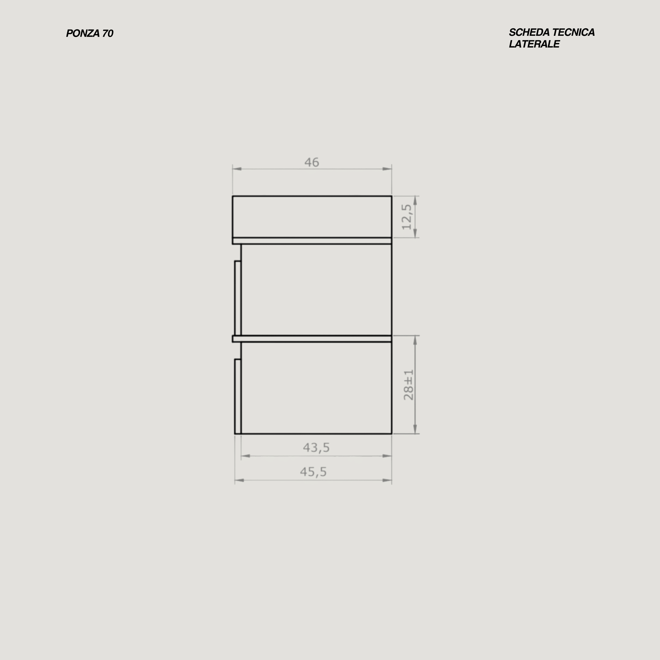 - Misure base inferiore: L 70 x H 28 x P 46 (cm)