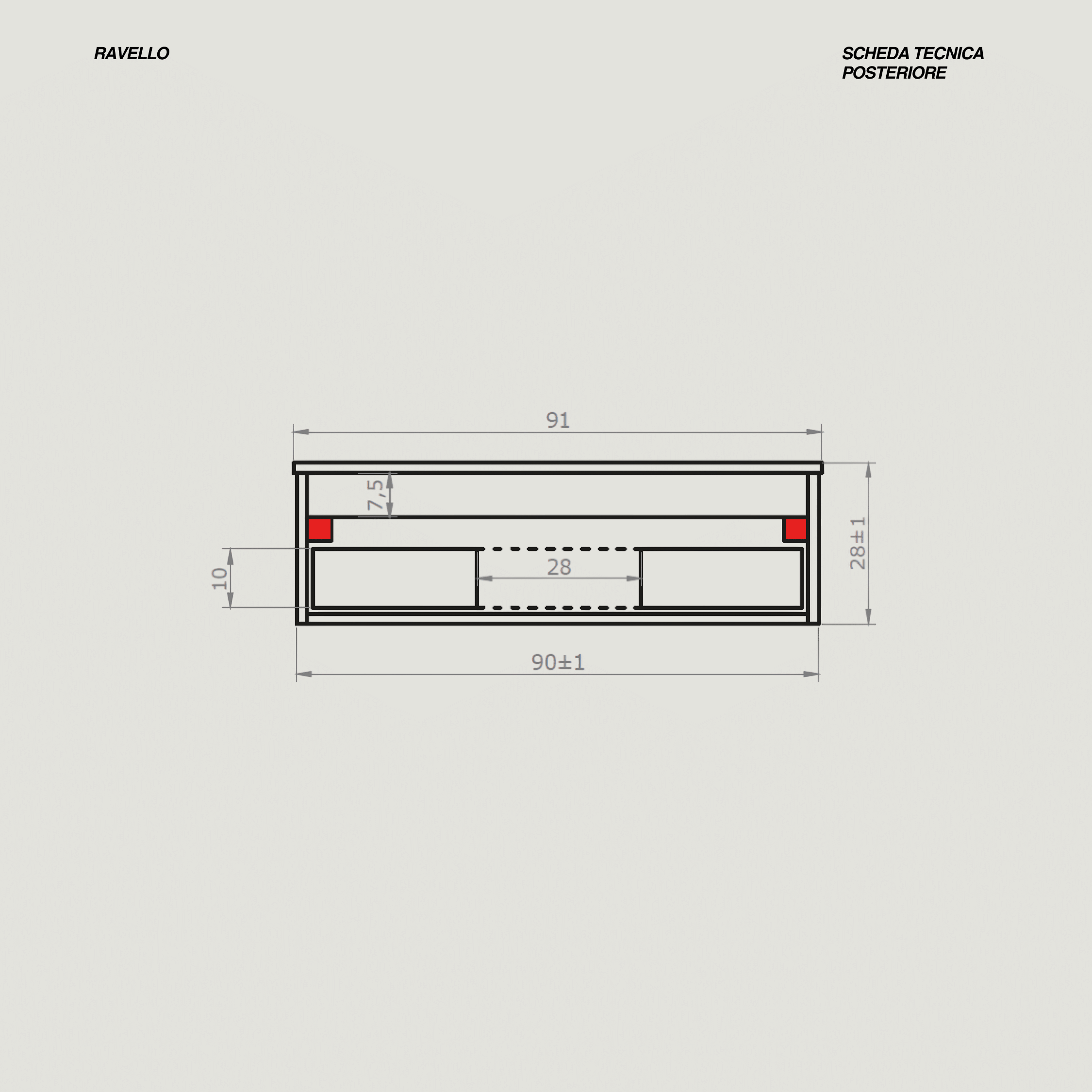 - Misure prodotto: L 90 x H 28 x P 46 (cm)