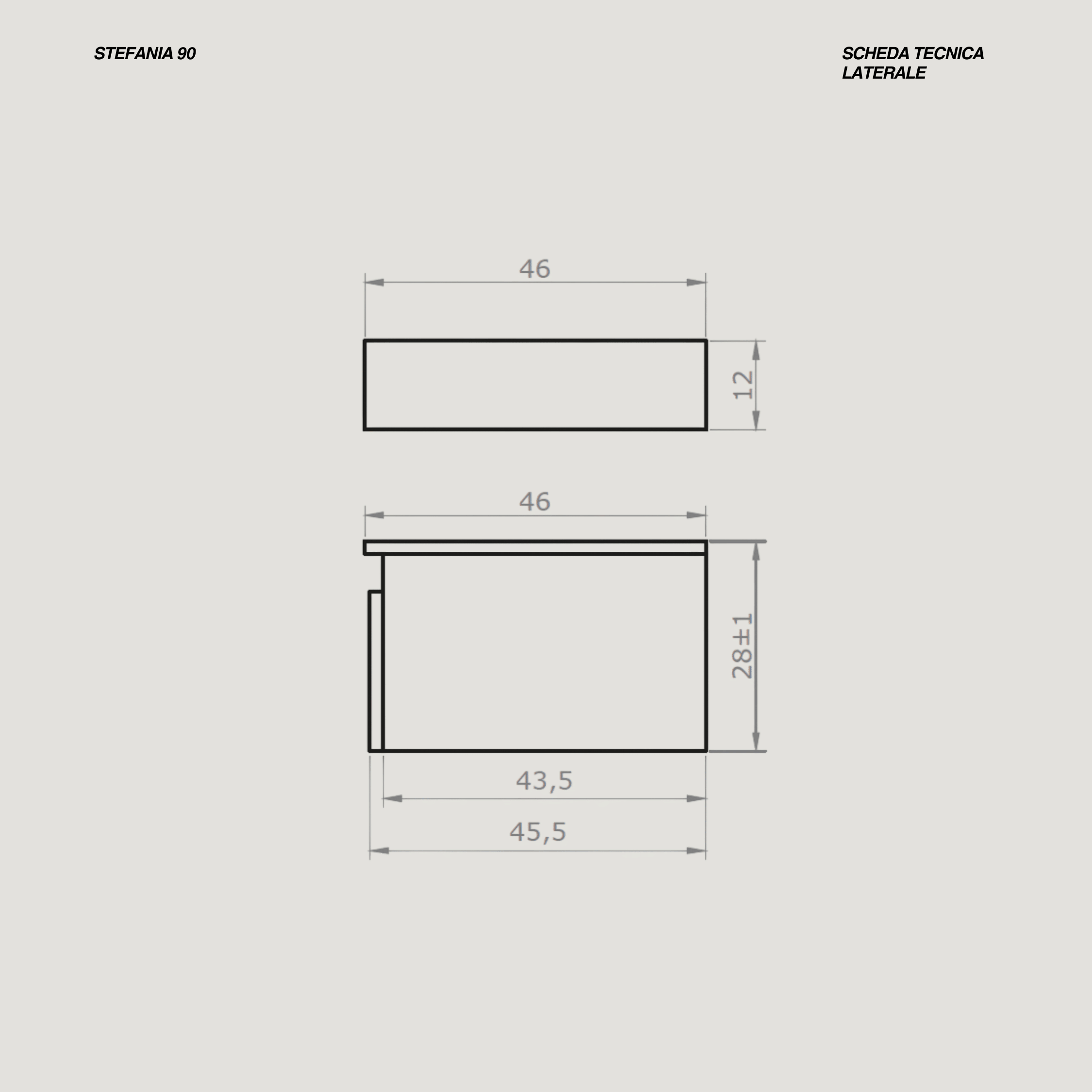 - Misure base: L 90 x H 28 x P 46 (cm)