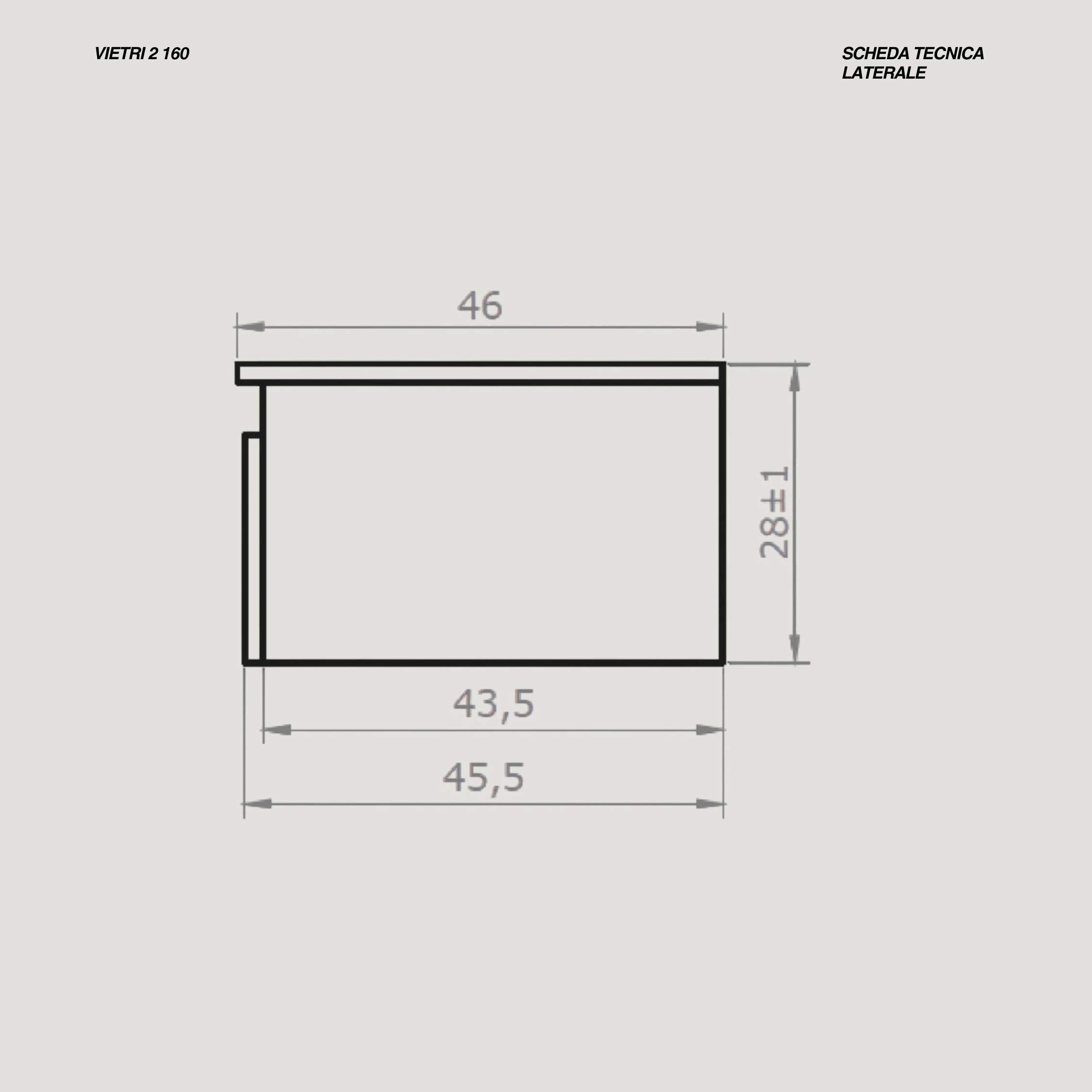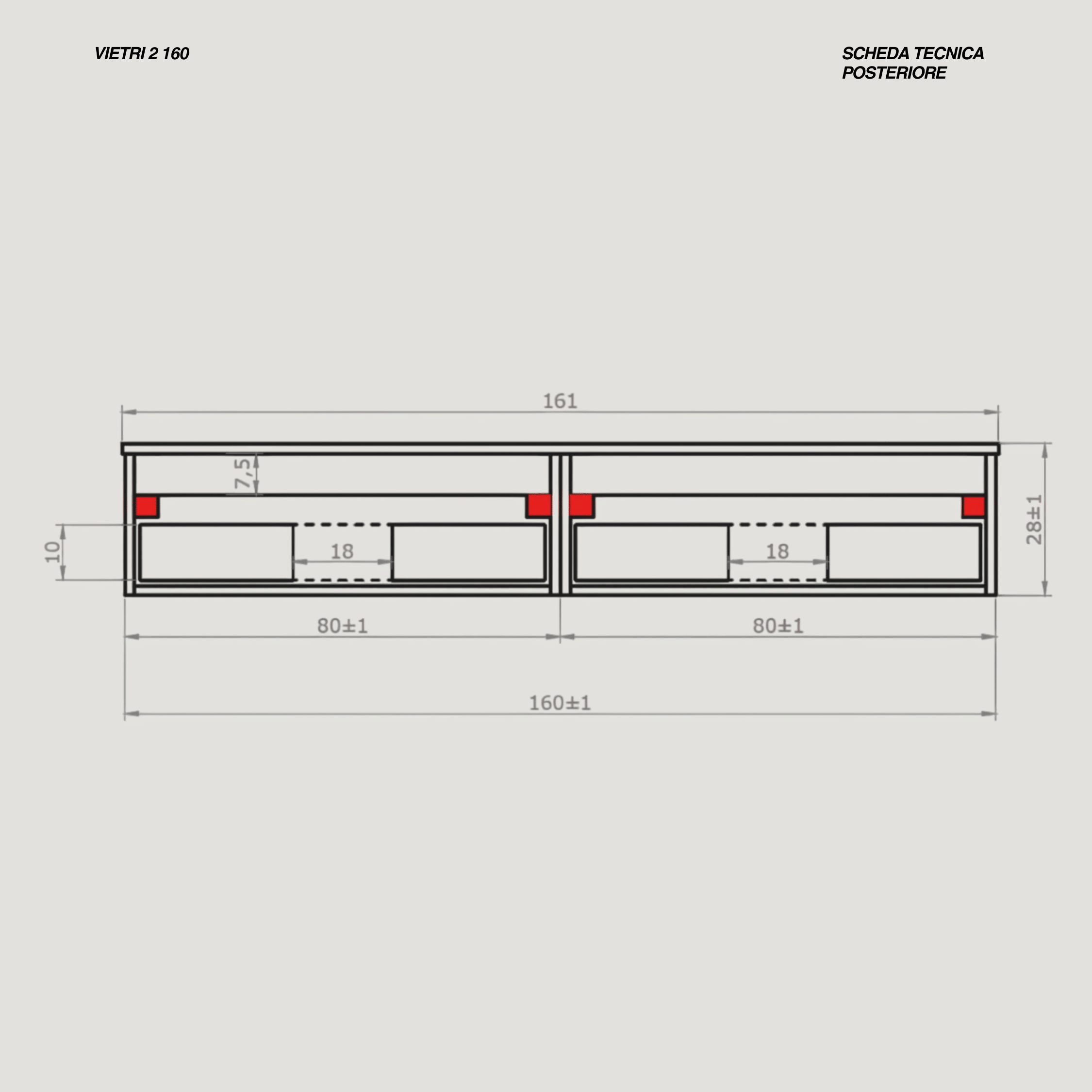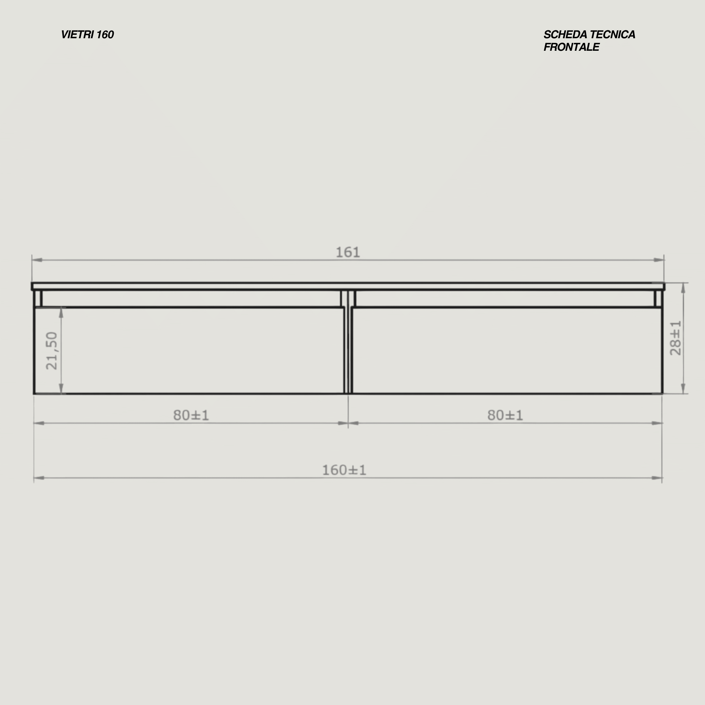 - Misure base 2 cassetti: L 160 x H 28 x P 46 (cm)