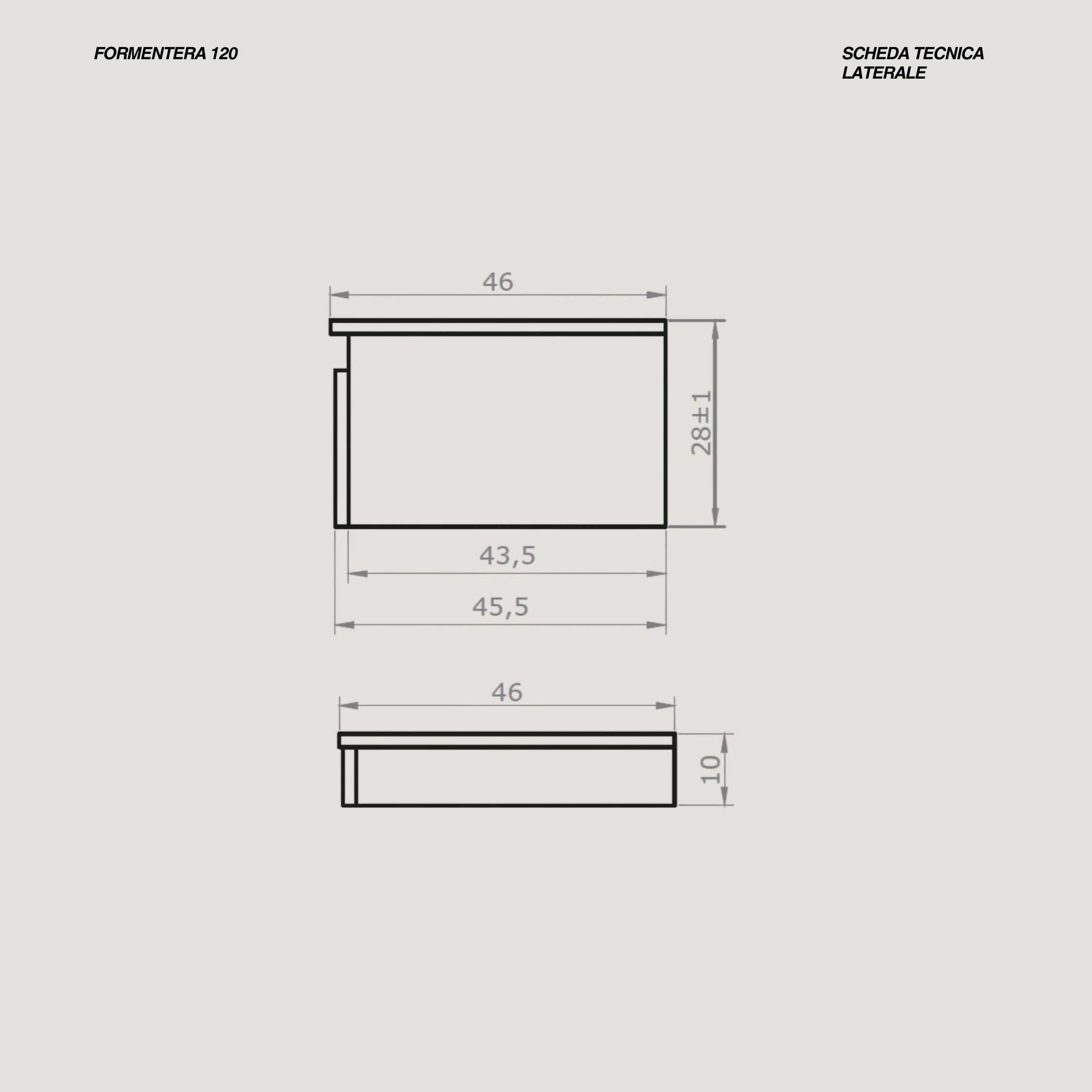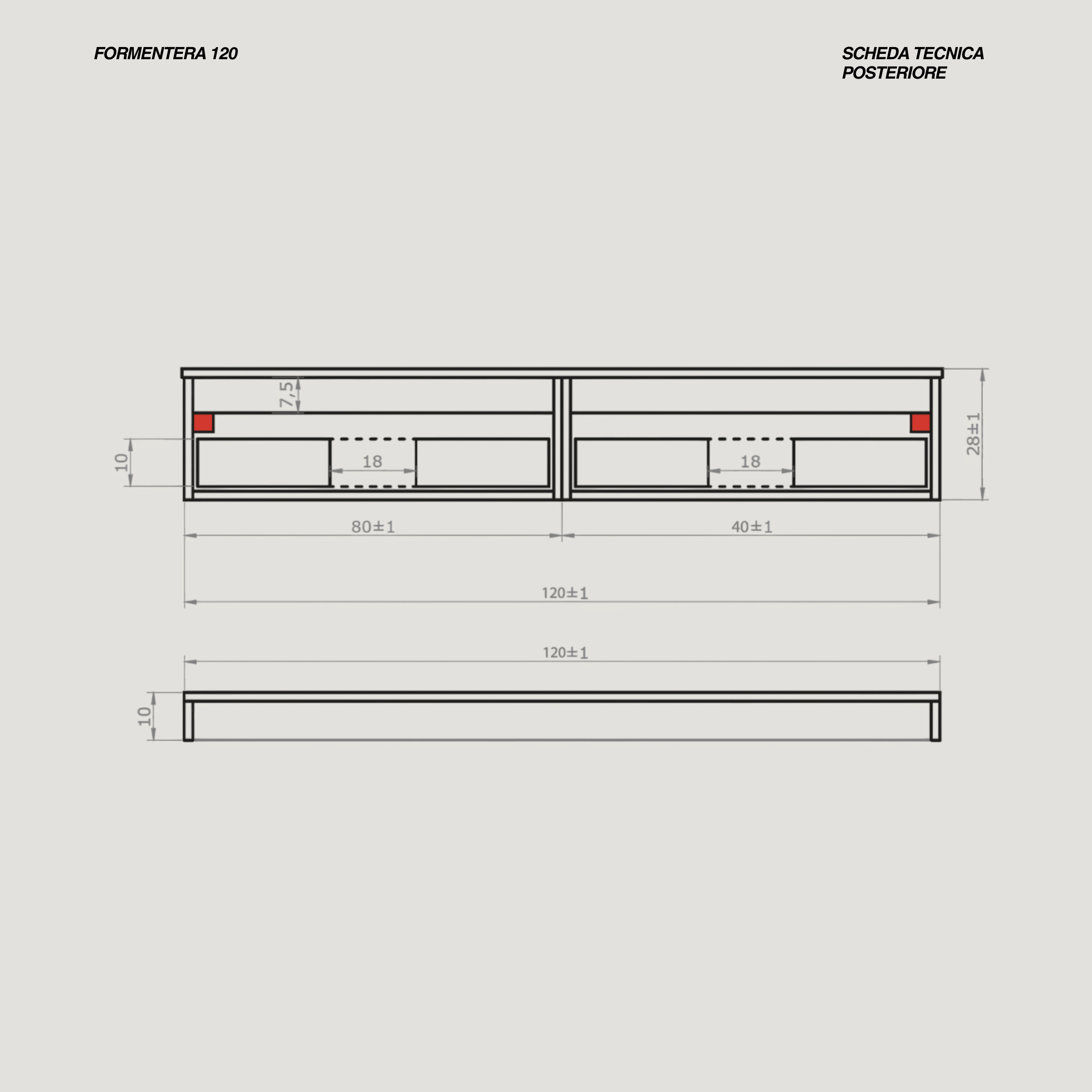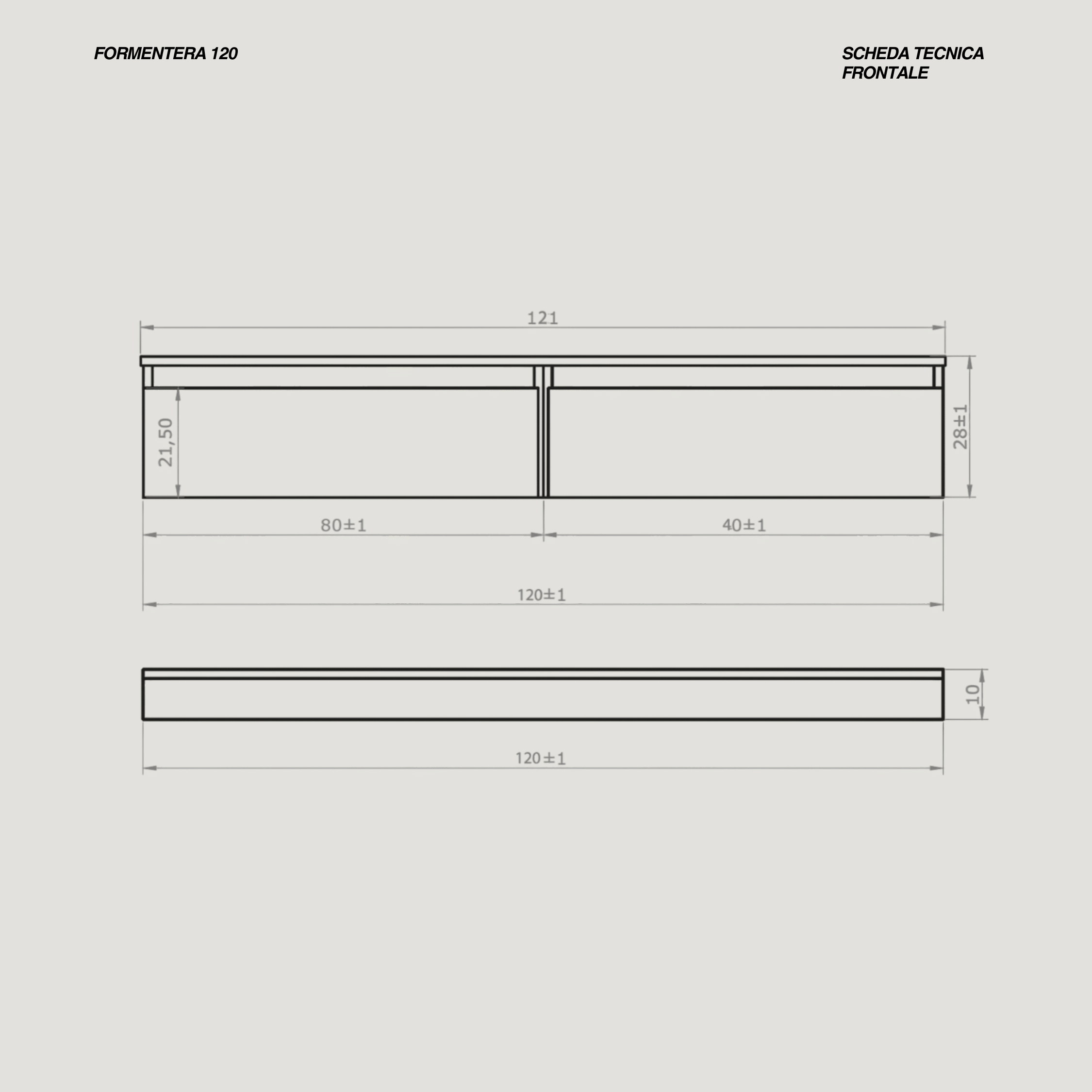 - Misure base: L 120 x H 28 x P 46 (cm)